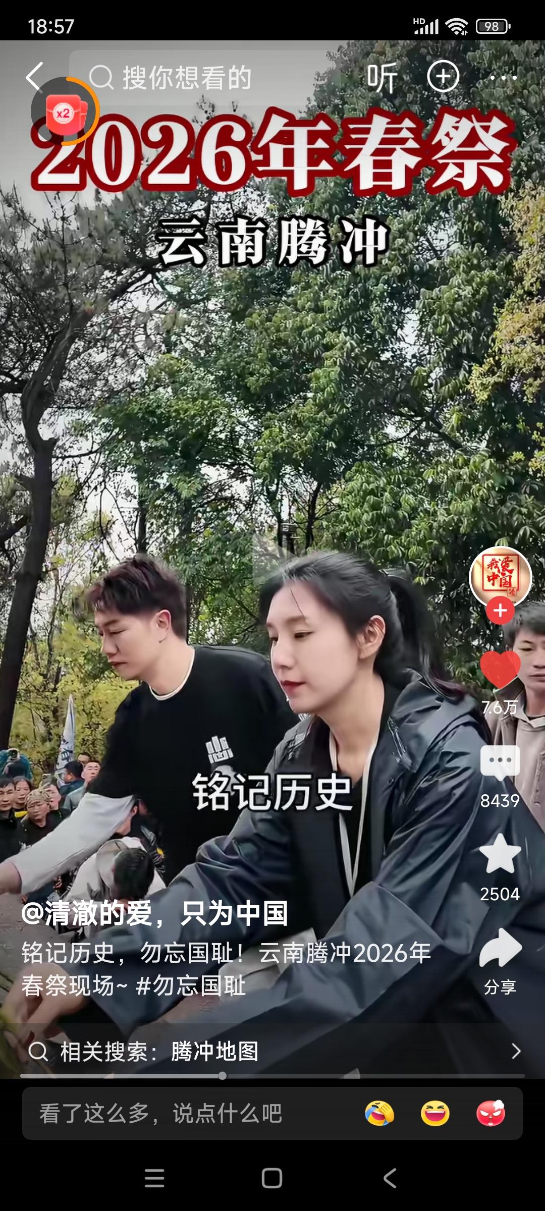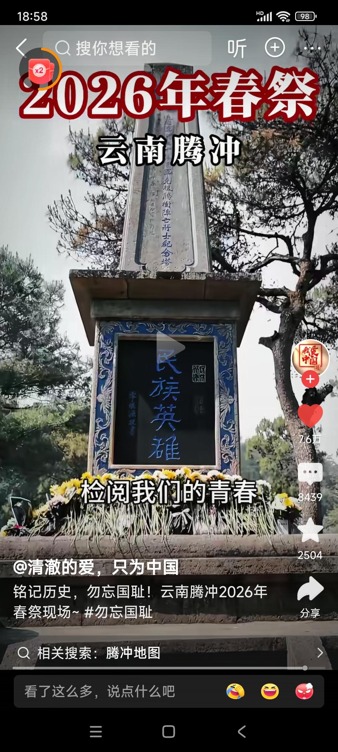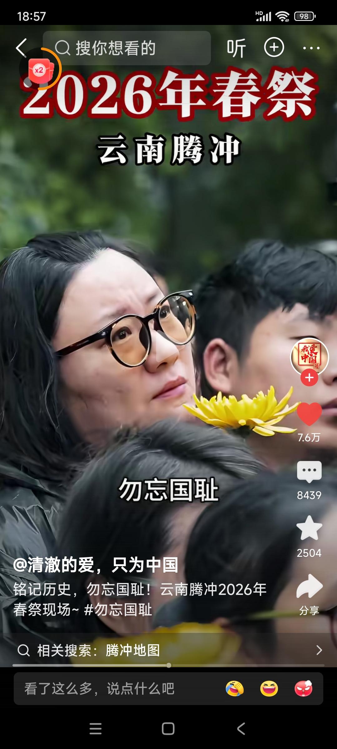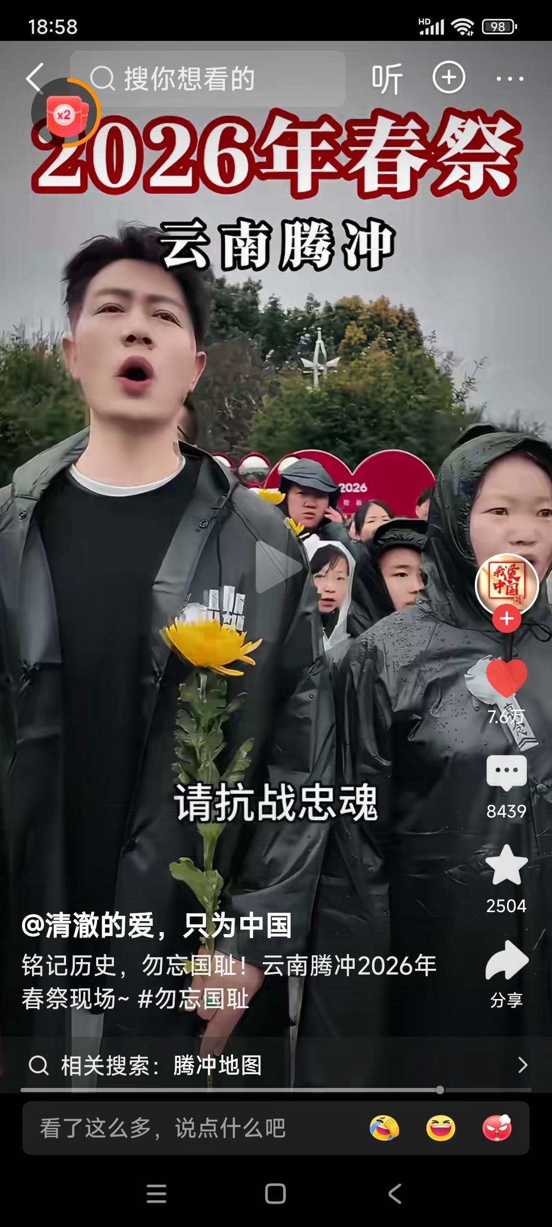云南腾冲,2026年春祭。 民众高呼:不要忘记,日本侵华十四年,杀我同胞3500万!铭记历史,勿忘国耻!请抗战忠魂,检阅我们的青春! 我想问,日本人或国内的精日分子们,会不会又说我们是在搞反日教育? 我想说,不管别人怎么看怎么说,这样活动我们一定要一代一代的搞下去! 忘记历史就意味着背叛,还有可能让历史悲剧再次重演! 希望全国各地的教育机构,都能很好地利用清明节的时机,对我们的青年学生进行历史和爱国主义教育!