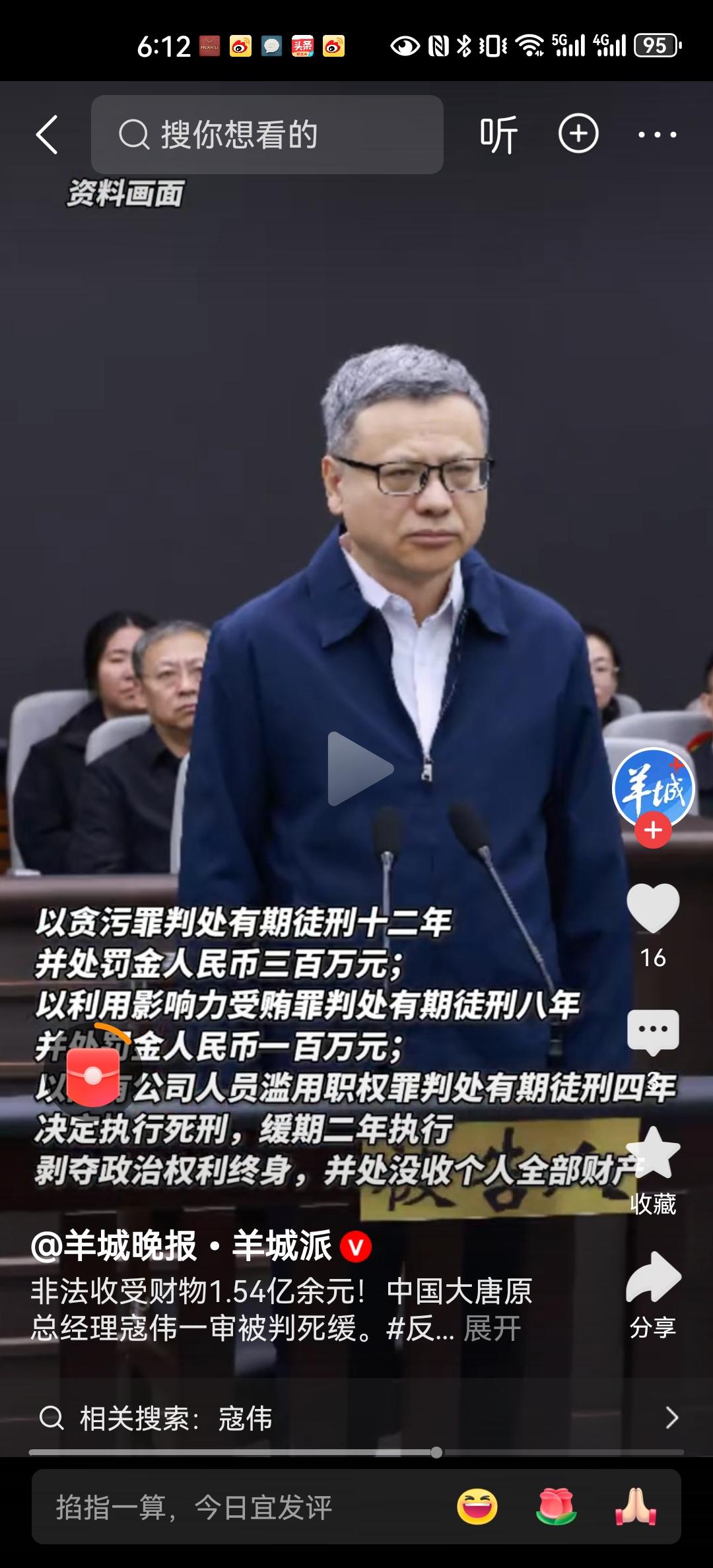 “能源虎”寇伟被判死缓落马两年之后,66岁的寇伟一审被宣判,受贿、利用影响力受贿、贪污、国有公司人员滥用职权,最终判死缓,罚金400万元,没收个人全部财产。 在之前落马通报中措辞非常严厉,可以说针对公职人员违规违法所有的坏事他都做了!搞权色交易,钱色交易,道德败坏!而且没有法治底线,肆意侵吞巨额公共财物,没有任何收敛。在生活中贪婪腐化,毫无一丝丝底线。即使在退休之后也是“退而不休”,还要继续捞钱。靠能源吃能源,还违规经商办企业。 其中有一点,投资股票和证券造成巨额亏损,于是套取国家资金1.38亿元。他都已经享受副部级待遇了,还如此贪婪,涉案金额达到近3亿元。最终判了死缓,将来牢底坐穿。在判决中没有写到未来表现良好,假如改无期徒刑时,能否减刑和假释。不过像这种人,就是应该让他们牢底坐穿。 对反腐取得的每一个成果欢呼!不容许他们干了坏事还能逃脱处罚!真的是罪有应得!