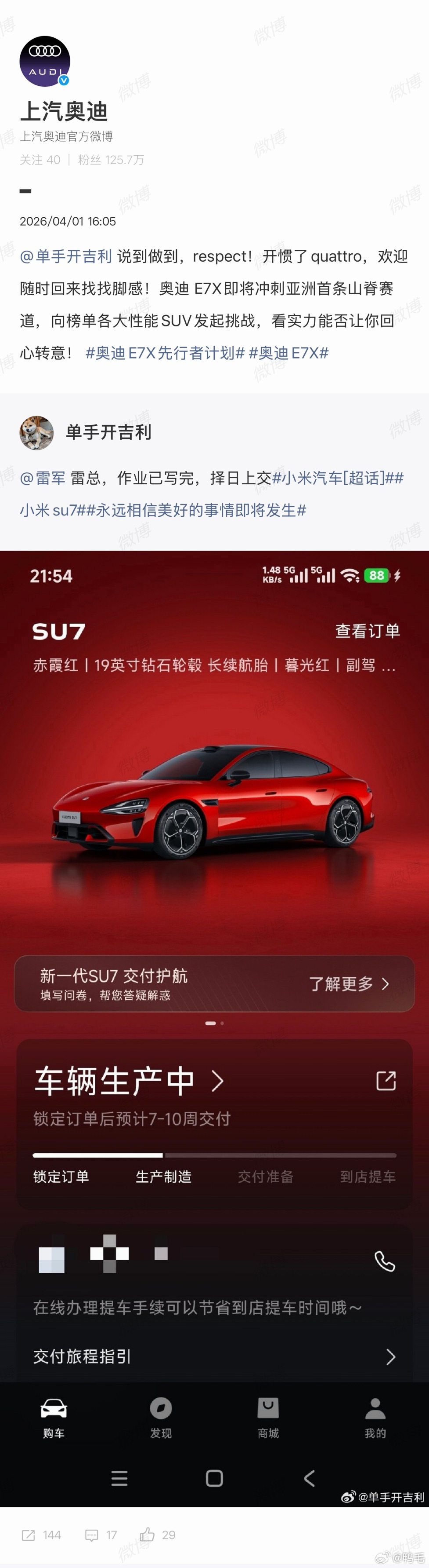 人家车主刚订完SU7,这边就喊话开惯了quattro随时回来找脚感,一来一回全是活,两边都太会整活了。