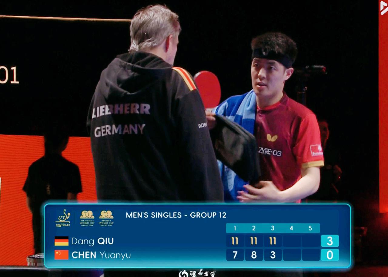遗憾!陈垣宇被邱党零封了,已经淘汰出局。 第一局 开局两人胶着, 4:4之后, 邱党连赢3球, 7:4拉开分差, 最后11:7拿下 第二局 邱党4:1开局 11:8拿下 第三局 陈垣宇崩了, 邱党11:3拿下。 陈垣宇成为本次世界杯, 国乒首个淘汰的选手。