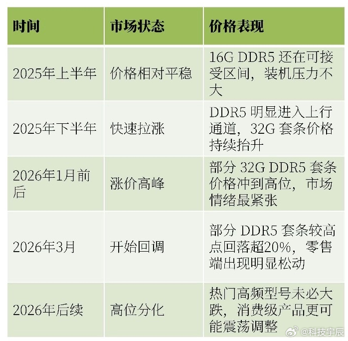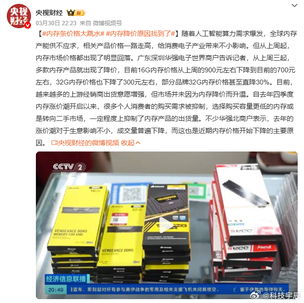 内存的等等党终于熬出头了!之前 AI 带起的涨价潮把装机党逼疯了:16G 内存干到 900,32G 贵到离谱,想装本地 AI 都舍不得加内存,要么凑合用小内存,要么蹲二手,硬生生憋了大半年需求。结果上周直接大跳水!华强北商户说,16G 跌到 700,32G 降 300,部分款直降 30%!现在上游急着出货,但消费者都被涨怕了还在观望…早买早享受晚买享折扣这话真没说错!这波你们冲不冲?内存条价格大跳水