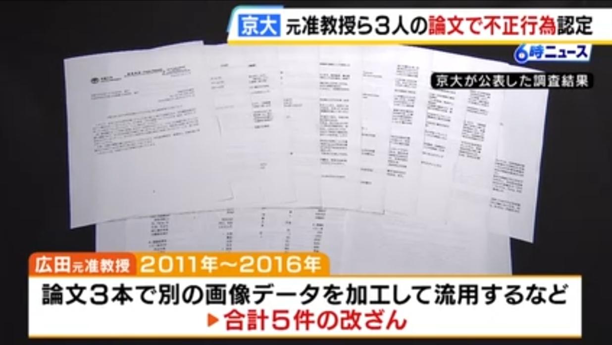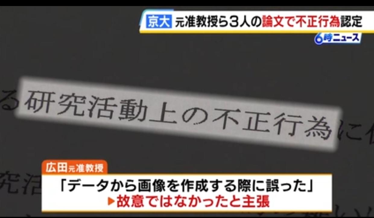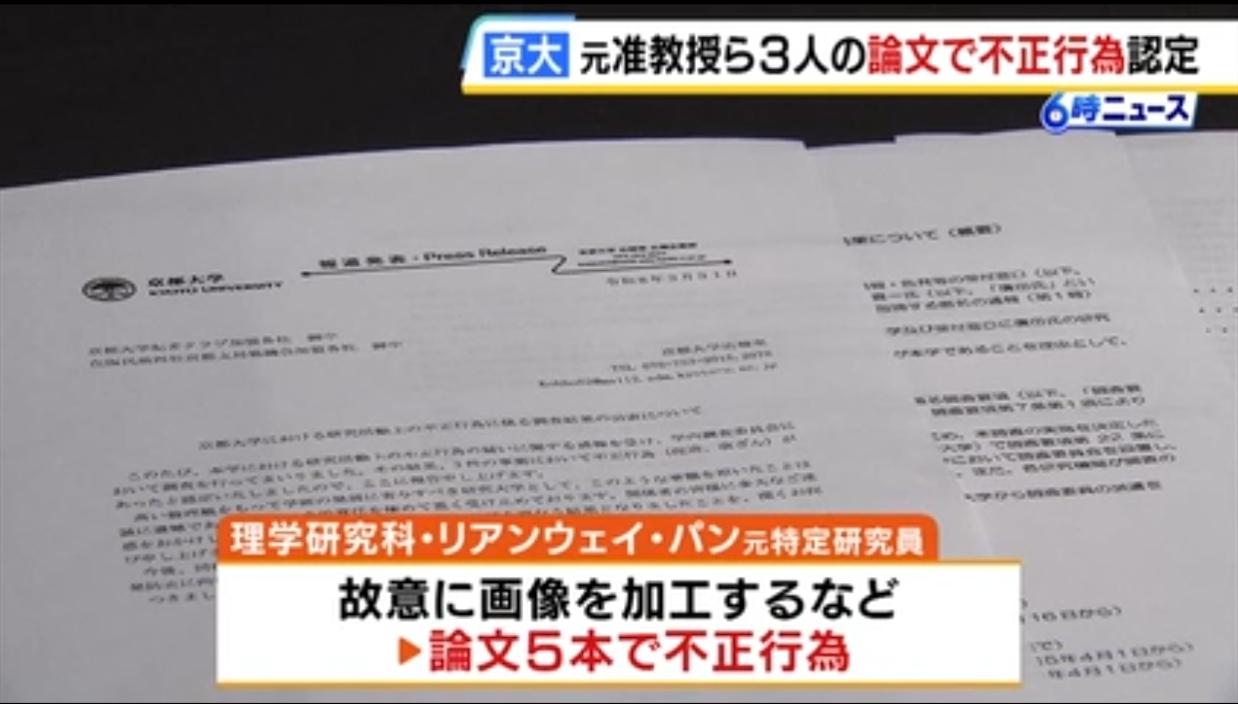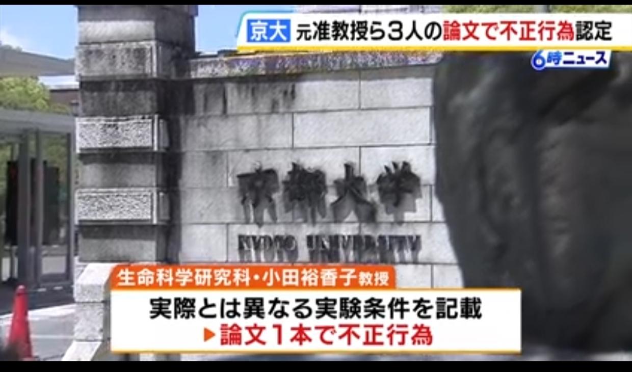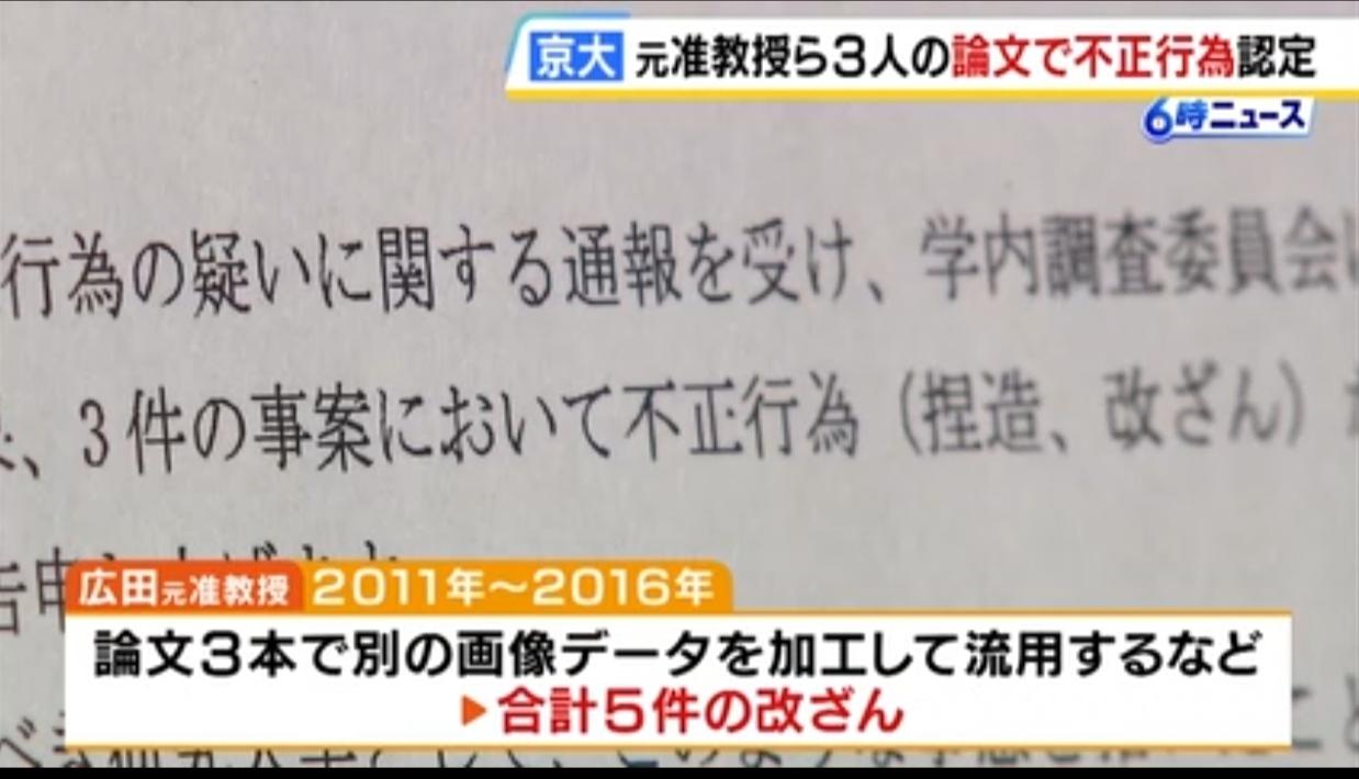 日本名校三名教授爆论文造假丑闻 日媒《MBS NEWS》4月1日报道,京都大学三位教授和副教授撰写的论文被证实存在造假行为。 三人被认定为不端行为,其中包括京都大学医院教授广田喜一。 据京都大学称,广田在2011年至2016年间发表的三篇论文中,共有五篇论文造假,包括对其它的图像数据进行加工后使用。 面对调查,广田声称:他并非故意,而是“在创作图像时失误”。 此外,理学院专项研究员梁维邦(音译)故意篡改图像。生命科学研究生院的小田裕香子教授在五篇论文中被发现造假,描述的实验条件与实际不同。 京都大学正在请求更正和撤回论文。 论文