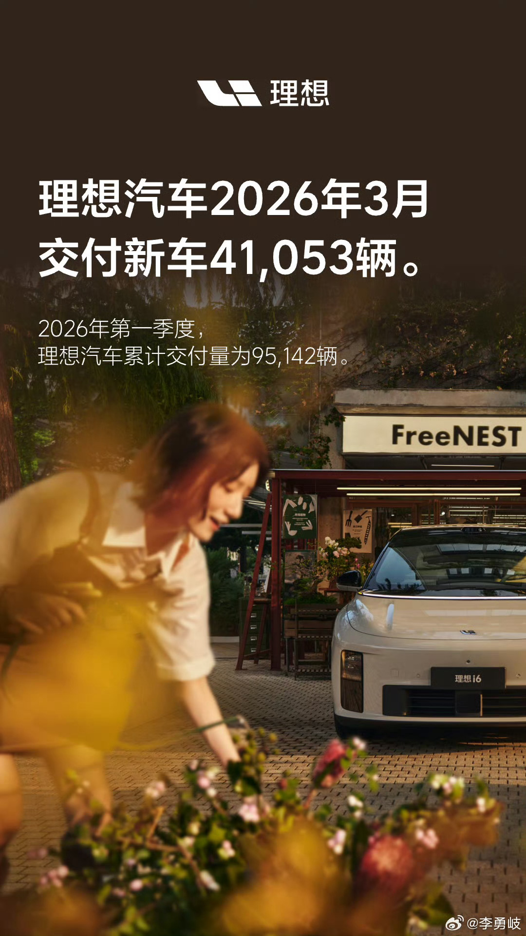 理想汽车3月份交付了4.1万其中2.4万是理想i6贡献的,价格:24.98-26.98万