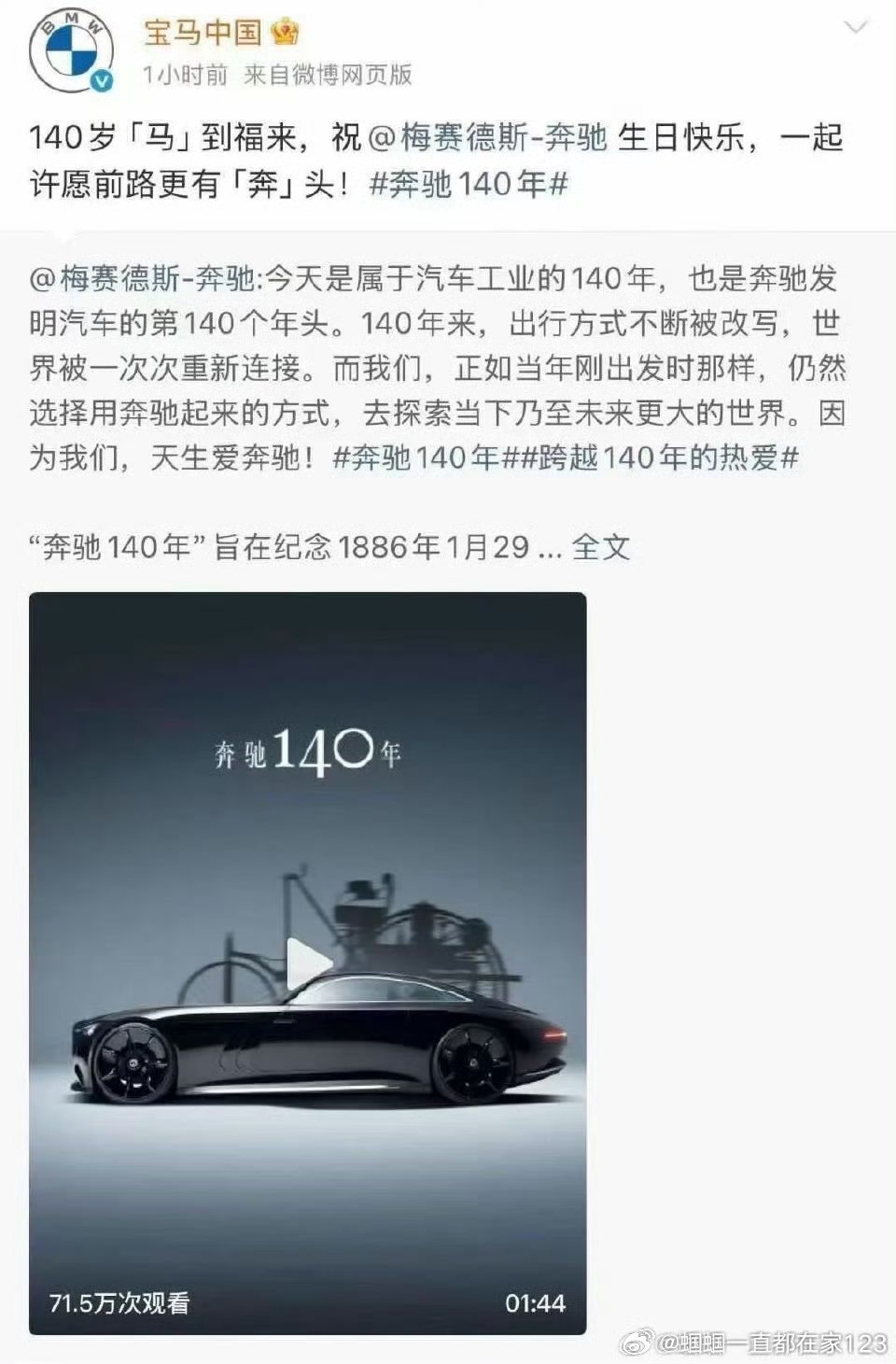 奥迪喊话老车主随时回来看到这个tag【图1】,我第一直觉是美好。营销嘛...就应该是这个样子。BBA这类品牌的营销我是一直都非常欣赏的。车企之间本就应该相互欣赏,彼此良性竞争,彼此成就!看到奥迪这tag,我第一时间想到的是宝马和奔驰的一波互动【图2】,140岁的马祝福140岁的奔。只有这样的微妙平衡才能真正成就百年车企。啥时候国内汽车市场上疯狂内卷,不是你死就是我活,非黑即白的舆论环境能变好呢?