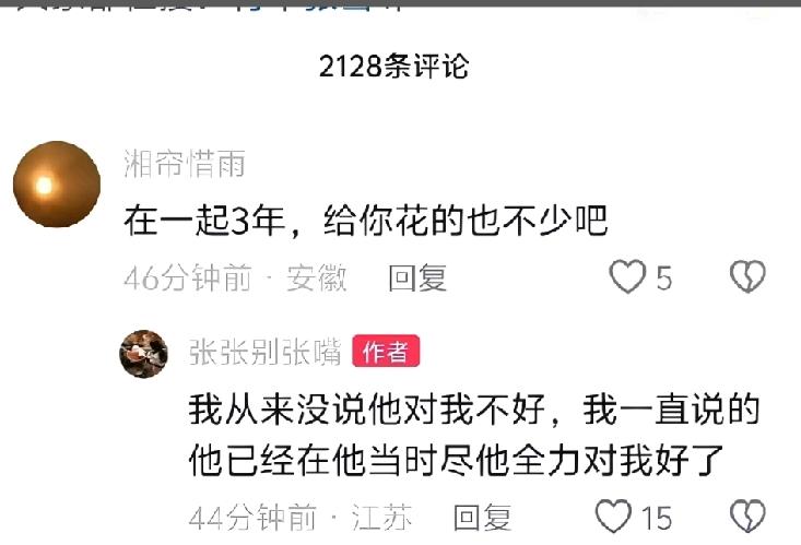 怎么感觉她想起号,又注册了一个新号。你自己亲口说在一起三年,他已经在他当时尽他全力对你好。给你买了5斤黄金,并且买了带有结婚的寓意的双喜的扇子和头冠。还给你买了车,买了房。临结婚的时候,你又说你恐婚,你到底是想结还是不想结?人家已经是你前前男友了,分手之后你又谈了男朋友,为什么到现在还在消耗他对你的好?