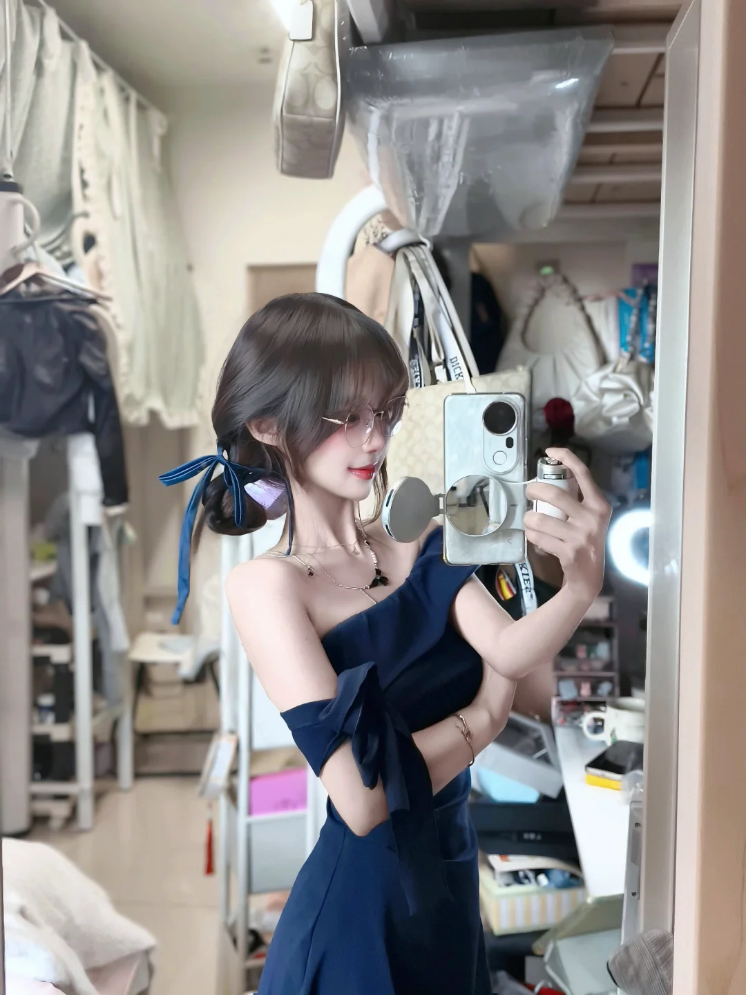 自带柔焦补光灯绝了!寝室背光或者晚上断电后对镜拍,脸直接自带奶油肌滤镜