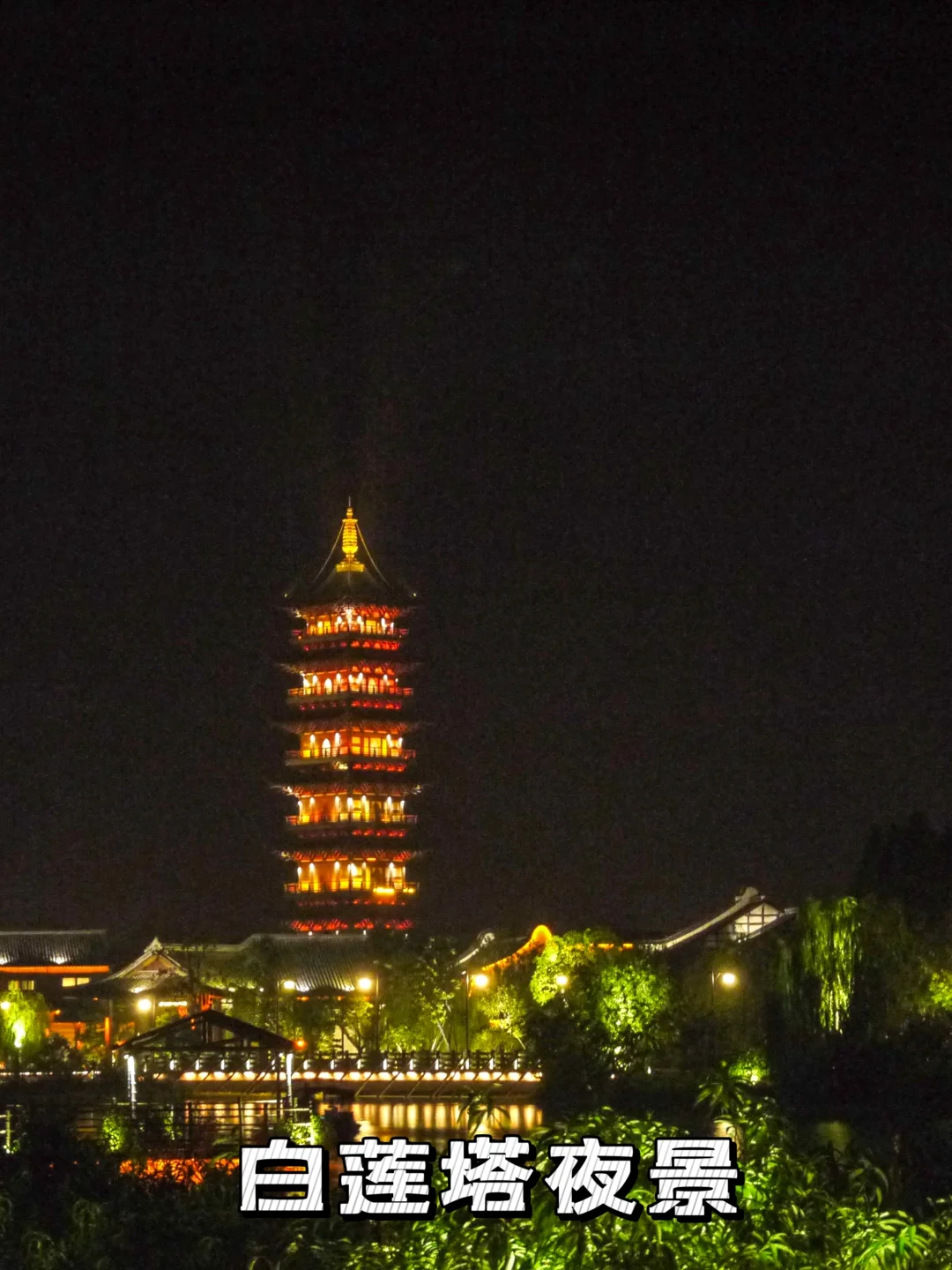 西栅醒目地标,登塔看运河与全镇。待夜幕降临,塔身的水中倒影别具梦幻。