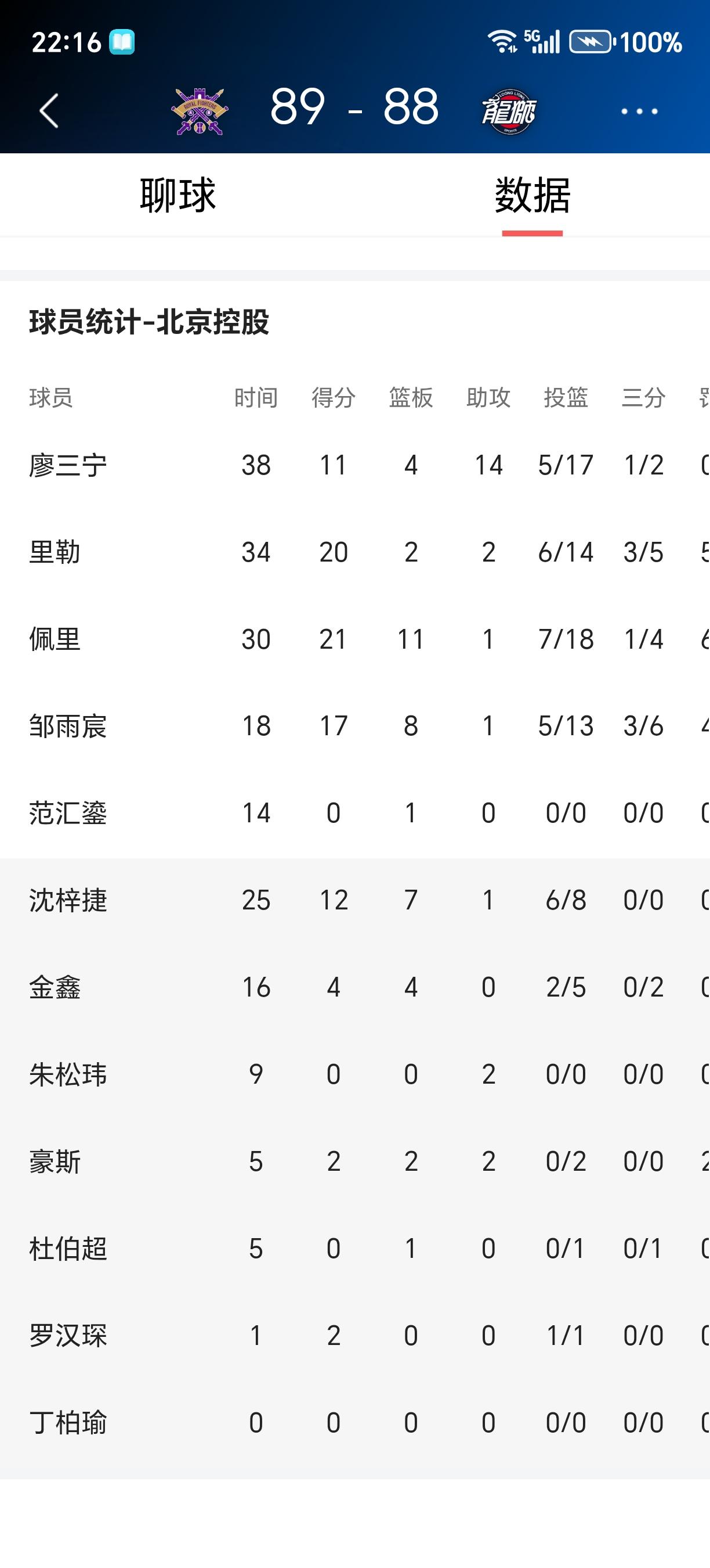 还有多少人夸米切尔热教有方呢? 今晚广州龙狮客场又遭北控89:88绝杀! 这场比赛如果是杜锋执教的话,肯定会被喷得体无完肤~下课吧! 第四节比分来到了79:85时三打一失误被人打成81:85。威金顿两罚中1时来到了86:83,广州领先3分广州龙狮张兴亮在北控剩下二十秒进攻时间下对扎控球员三分线犯规被人家86:86打平,广州利用仅剩的6秒多冫完成了反超88:86胜利在望时,那个被叫下课叫得最狠的主教练张庆鹏布置了一个绝杀战术,米切尔相形见绌了吧? 广州龙狮离季后赛又大错了一步。 徐昕今晚的付出付之东流。 徐昕上半场出场13分钟,3投3中罚篮6中5得11分3板2助攻2盖帽。 徐昕今晚总共出场时间32分钟得13分、10板、6羞帽、2助攻,正负值+9全队最高,只可惜球队仍然是输球了。 广州龙狮这赛季有多少次被绝杀了呢? 广东宏远与广州龙狮是赛季谁被绝杀的次数多? 以后少吹捧外国教练吧!别崇洋媚外了,别总认为外国的月亮比中国的圆。 广州龙狮输了这场比赛,就掉出了十二名,想进季后赛的难度再一次加大,太可惜了!