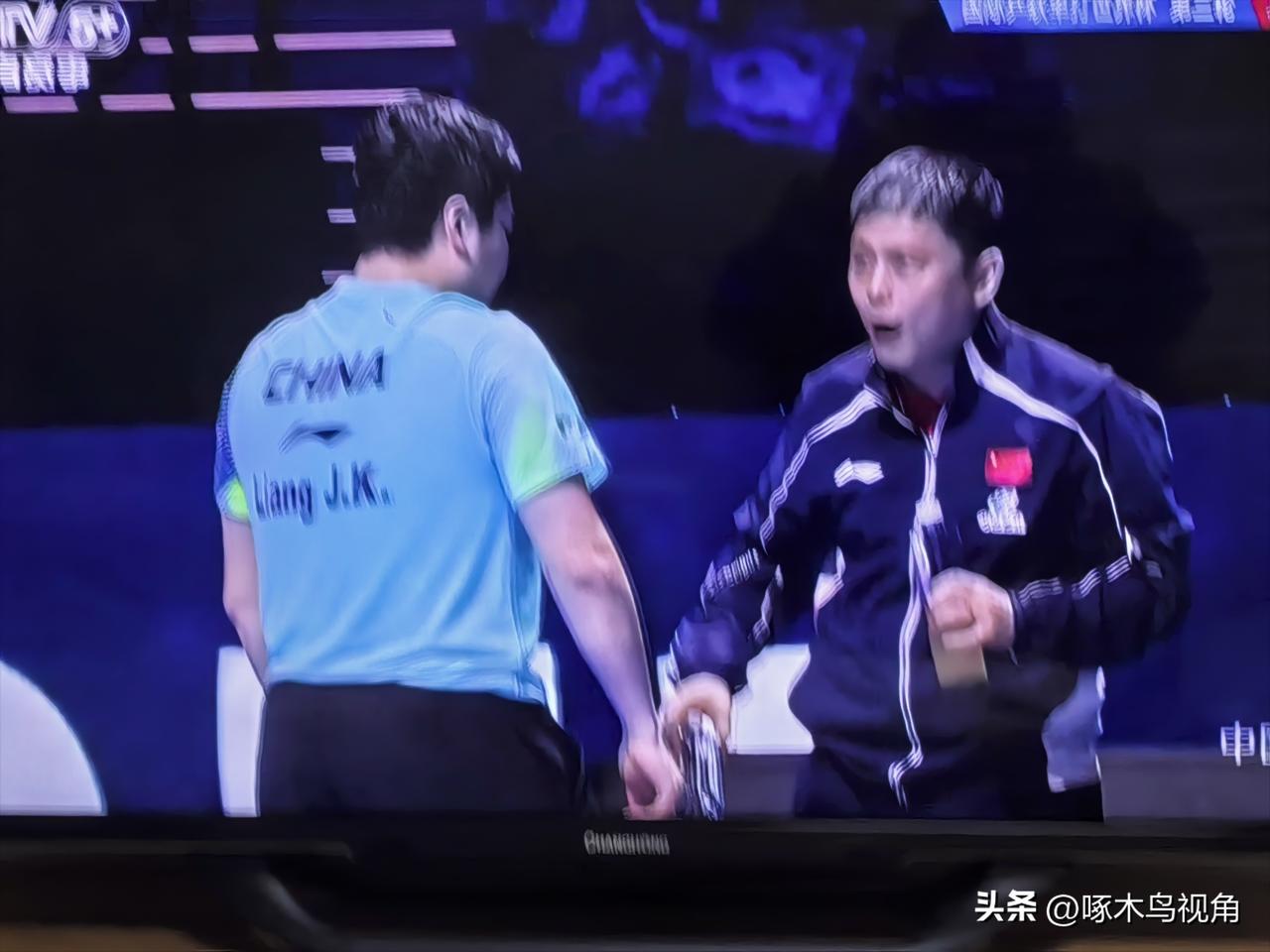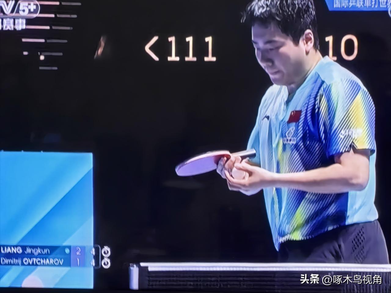 乒乓球世界杯,梁靖崑比赛没结束就确定出局。 国际乒联单打世界杯第三轮,梁靖崑对阵奥恰洛夫。奥恰洛夫世排名15名开外,梁靖崑第13位。 由于梁靖崑首轮2:3爆冷,奥恰洛夫3:1取胜。本轮梁靖崑只有打出三比零,或三比一的大比分,才能小组突围。否则将会小组出局。 比赛开始,看得出梁靖崑非常想拿下这场比赛。整个人调动的也非常积极。 第一局开局就非常激烈,双方打到5—5后,梁靖崑率先摆脱出来。10—7拿到局点,11—8取胜第一局。 第二局梁靖崑4—1开局,被奥恰洛夫追到4平。梁靖崑7:6领先一分,请求暂停。暂停回来连拿4分,11::6再下一城。大比分2:0领先。 第三局开局梁靖崑就落后,11:4奥恰洛夫拿到局点。11:6扳回一局。大比分来到2:1。这就意味着梁靖崑第四局必须拿下,才有可能晋级。 第四局是梁靖崑非赢不可的一局,开局2:4落后,后来追到4:4平。奥恰洛夫叫了暂停。暂停回来,第一分奥恰洛夫就挑战梁靖崑的打球,结果成功了。比分来到4:5梁落后一分。随后梁靖崑紧咬比分,从6:6一直纠缠到9:9。最后还是奥恰洛夫10:9拿到局点,11:9兑现局点。大比分打成2:2平。 这就意味着梁靖崑已经小组赛出局了。奥恰洛夫小组成功出线。 但俩人决胜局依然很精彩,双方打到10平后,奥恰洛11:10拿到局点。梁靖崑发球,奥恰洛夫提出挑战,梁靖崑直接认栽。回放结果也是梁靖崑发球犯规。这样梁靖崑小组出局后,又输掉了本场比赛。 本场比赛虽然遗憾收场,但不得不说,这是梁靖崑近期打得最好的一场比赛。尤其是前两局。就这也没避免出局,看来梁靖崑职业生涯真的来到晚期了。