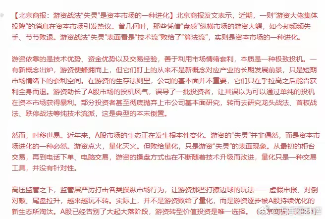 又来给量化洗地了!洗地的一波接着一波,但一点都不专业!长篇大论,说游资不是价值投