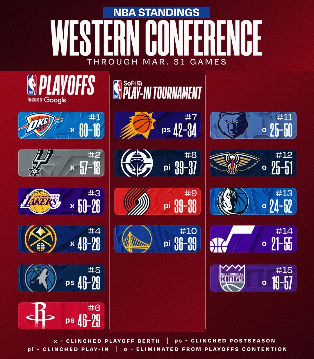 今日赛后排名与签位更新:太阳不敌魔术,活塞轻取猛龙,火箭击败尼克斯,湖人战胜骑士,开拓者客胜快船。