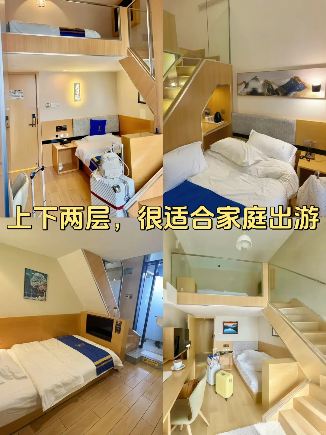房间loft房型,布局很合理,错层家庭房上层是1.6米床,下层是1.2米床,床很舒服,家庭出游或者好朋友几个一起住超便利。卫生间朝着太阳,并且干湿分离。