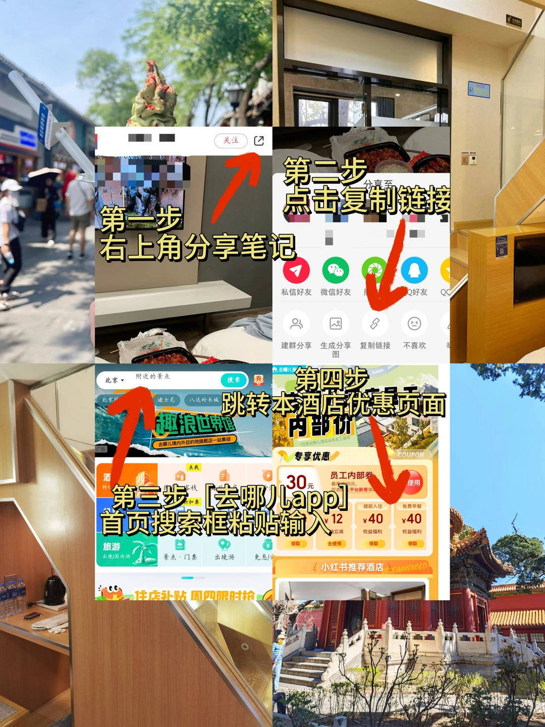 ①复制笔记链接到去哪儿旅行app