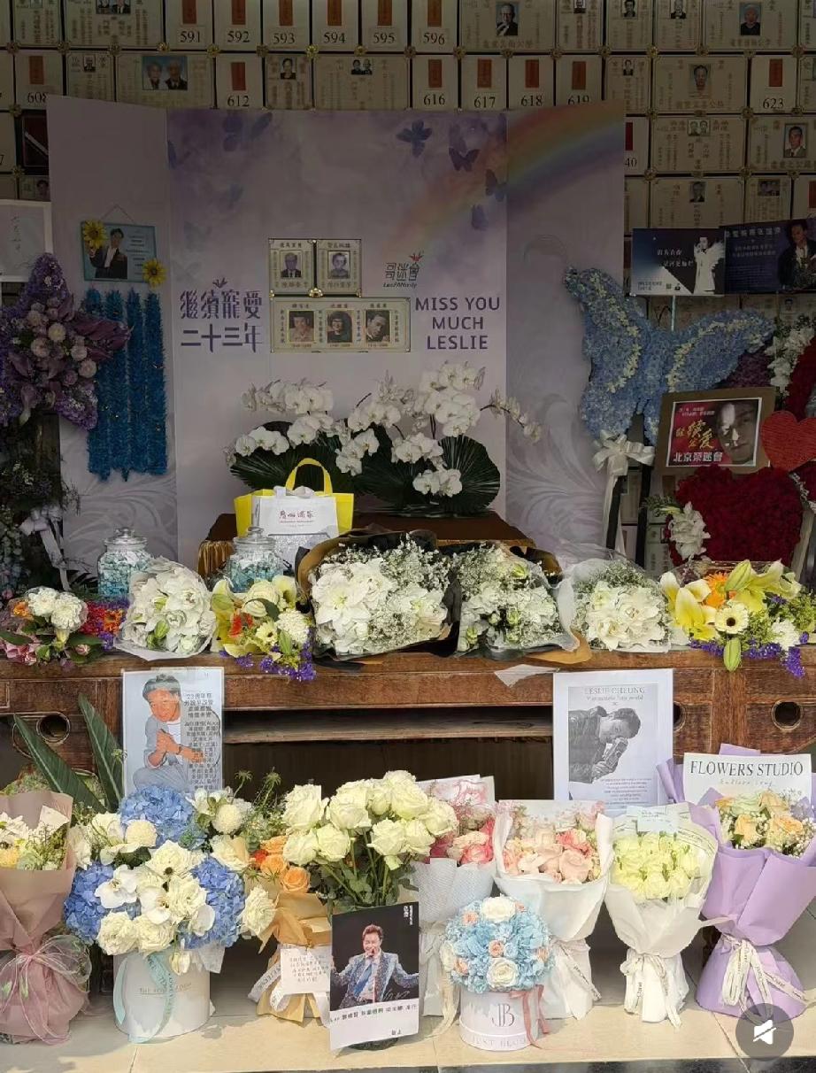 4月1日,江西荣迷送给张国荣的鲜花布置在中国香港宝福山的宝禅堂,这些鲜花太漂亮了,一看就是粉丝精心挑选的,真是有心了。 张国荣2003年4月1日不幸去世,终年46岁,上世纪八九十年代,他在乐坛留下了很多经典歌曲,比如《风继续吹》、《沉默是金》,影响了好几代人。 张国荣的粉丝是遍布全国各地,甚至世界各地的,每年的忌日即4月1日这一天,有些粉丝会专门赶到中国香港宝福山祭拜他,有一些只是送鲜花。 这一次江西的荣迷送了很多鲜花,这些鲜花直接就被送到了中国香港沙田的宝福山的宝禅堂,鲜花把宝禅堂衬托得非常漂亮,有点感人。