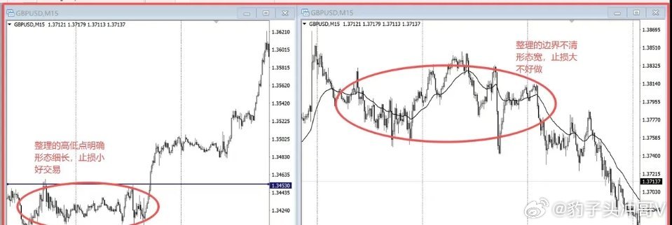 左侧结构清晰:形态收敛、破位明确、止损空间小,盈亏比合理,属于“好做的行情”。右侧结构混乱:高低点无序、没有明确破位点,形态宽,止损空间大,性价比低。