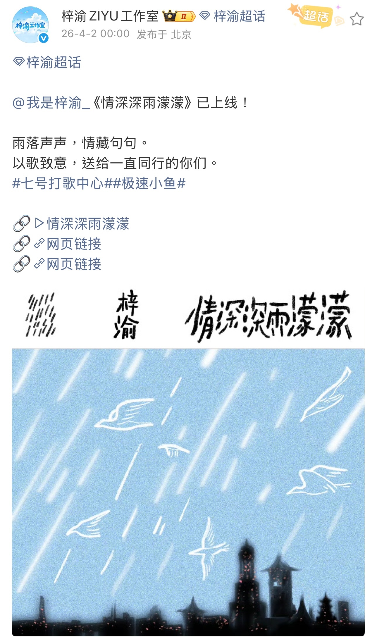 梓渝全新翻唱《情深深雨濛濛》上线,好好听,大家听了吗?