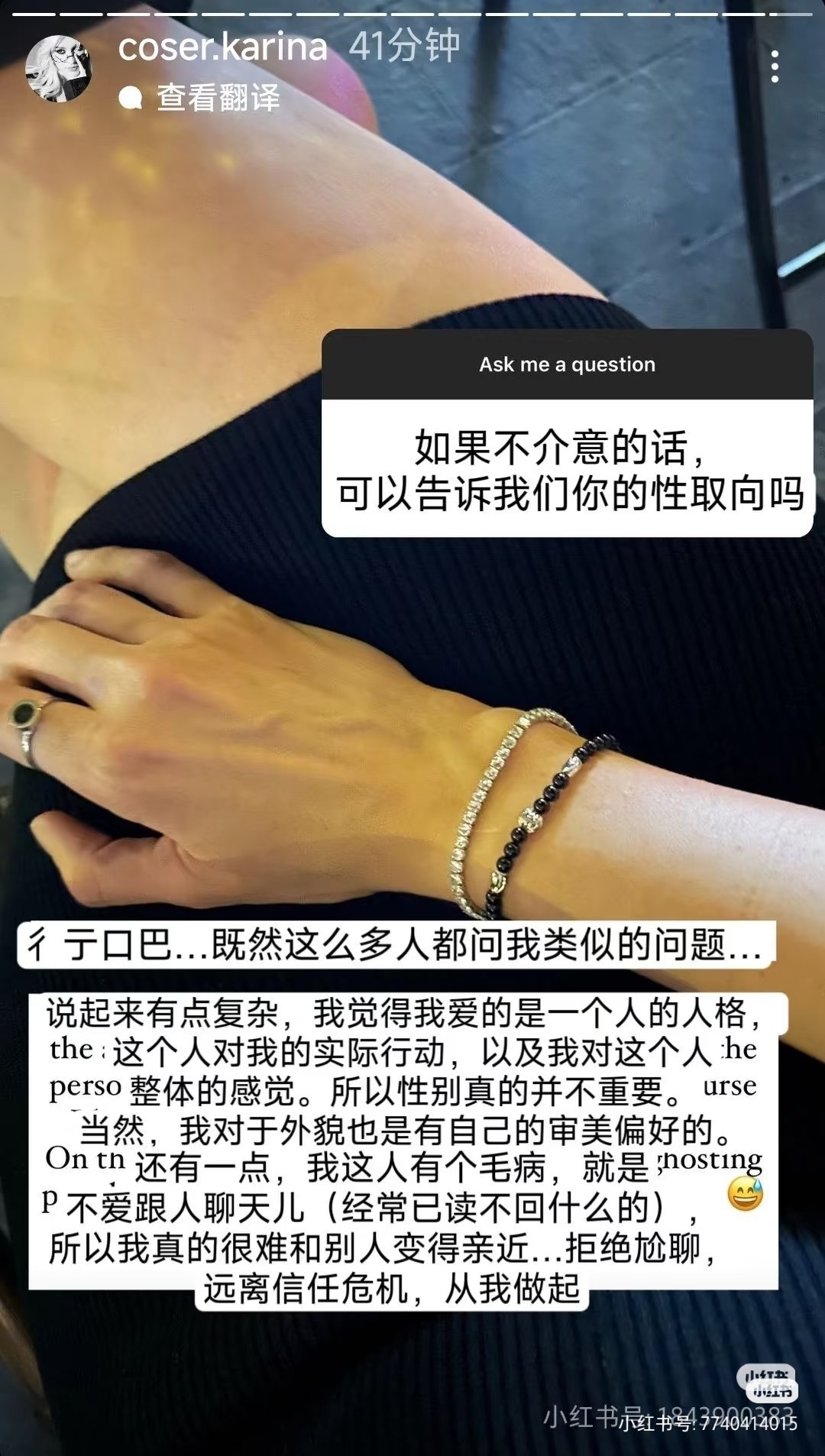 coser卡琳娜被站姐爆和浪姐女工作人员谈恋爱(p1-3)p4卡琳娜之前回复性取向问题不过粉丝为什么不能接受卡琳娜谈恋爱呀…不是都结过婚有孩子了吗
