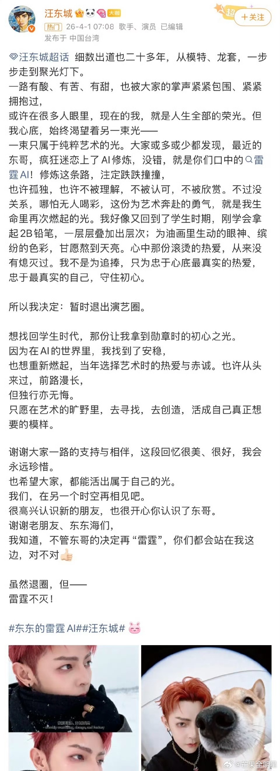 汪东城愚人节退圈大东哥是在开愚人节玩笑吧别一觉醒来天塌了