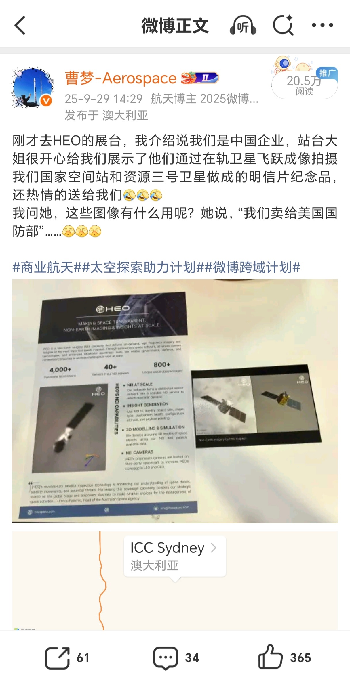 Vantor官宣中标NGA(美国国家地理空间情报局)发布的价值230万美元的项目,使用在轨卫星对近地轨道的重点空间目标进行高分辨率NEI(非地球成像),用于情报分析……并发布了一张拍摄的我们中科卫星03或04星的在轨照片玛德原来美国军方真的花钱在买卫星NEI的数据啊