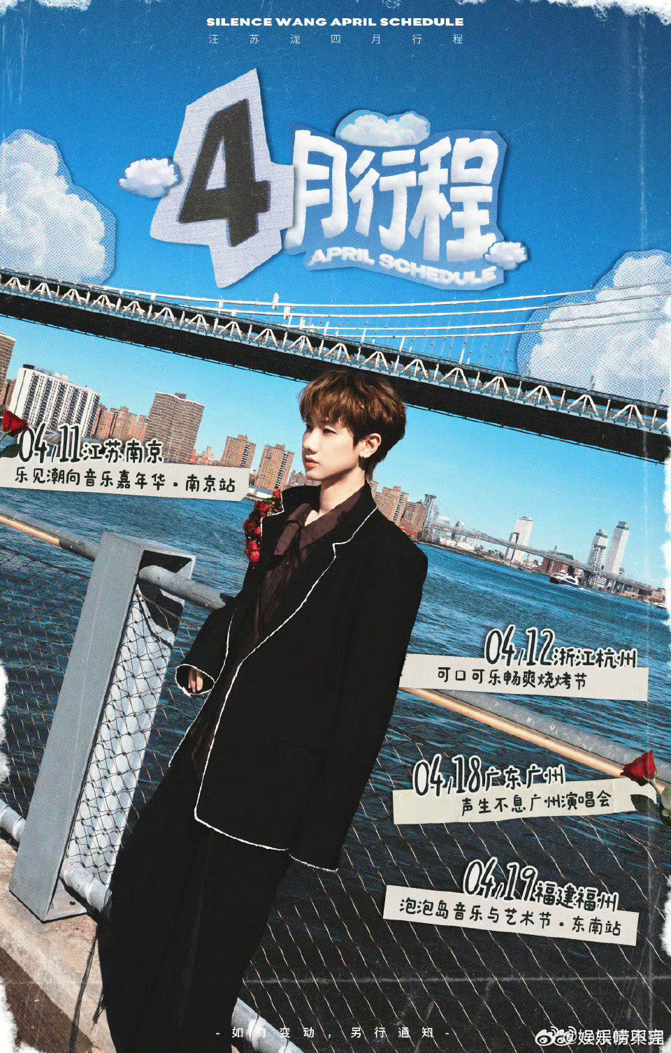 汪苏泷4月行程奔赴汪苏泷的四月音乐之约,各大舞台接连上线,每一场相遇都满是欢喜,用旋律定格春日的美好时刻。