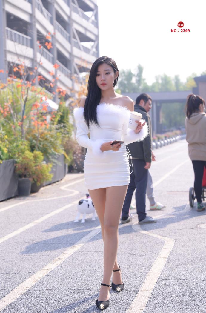 一字肩连衣裙搭配肉丝高跟简直无敌时尚街拍共享 街拍