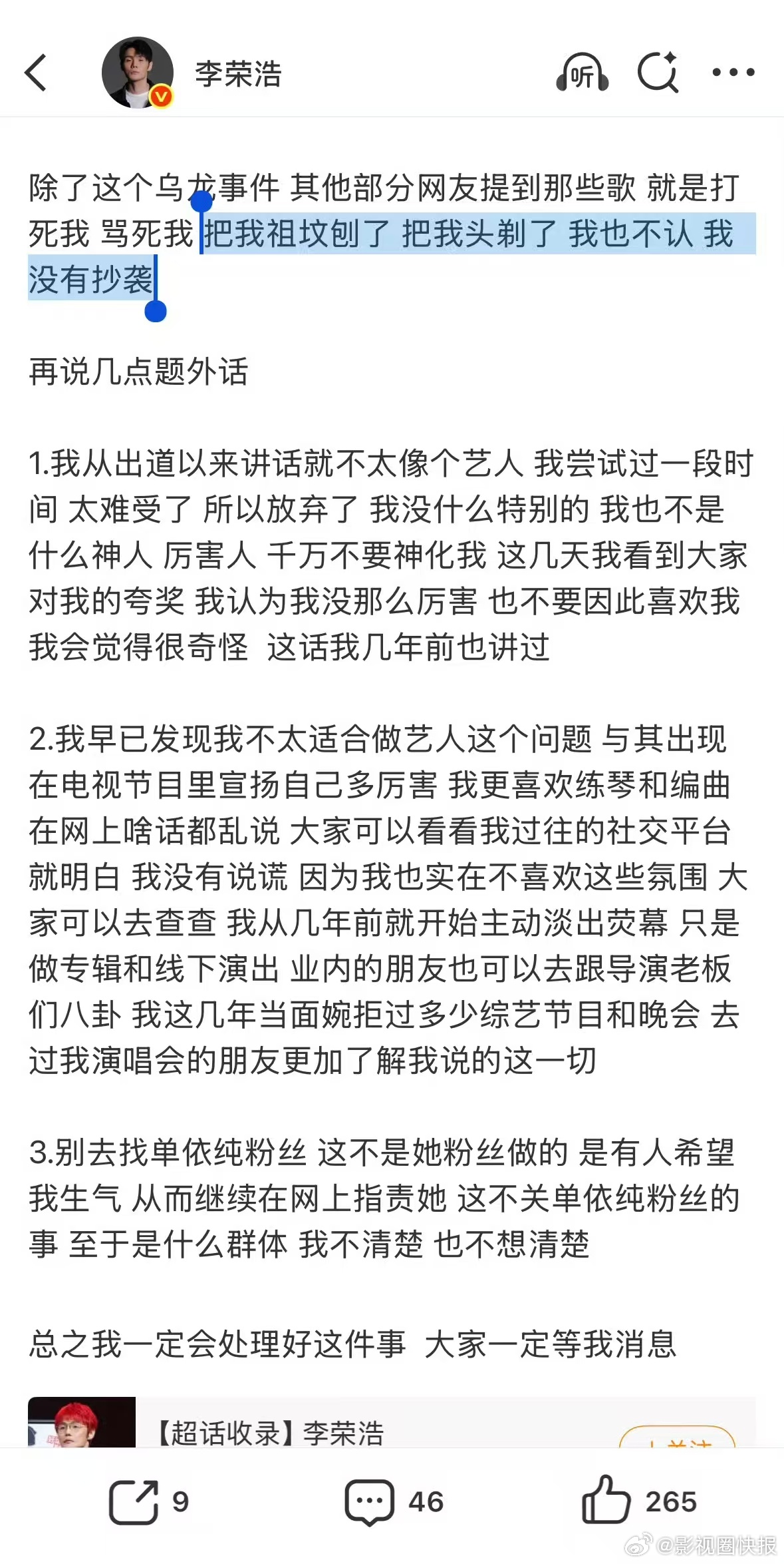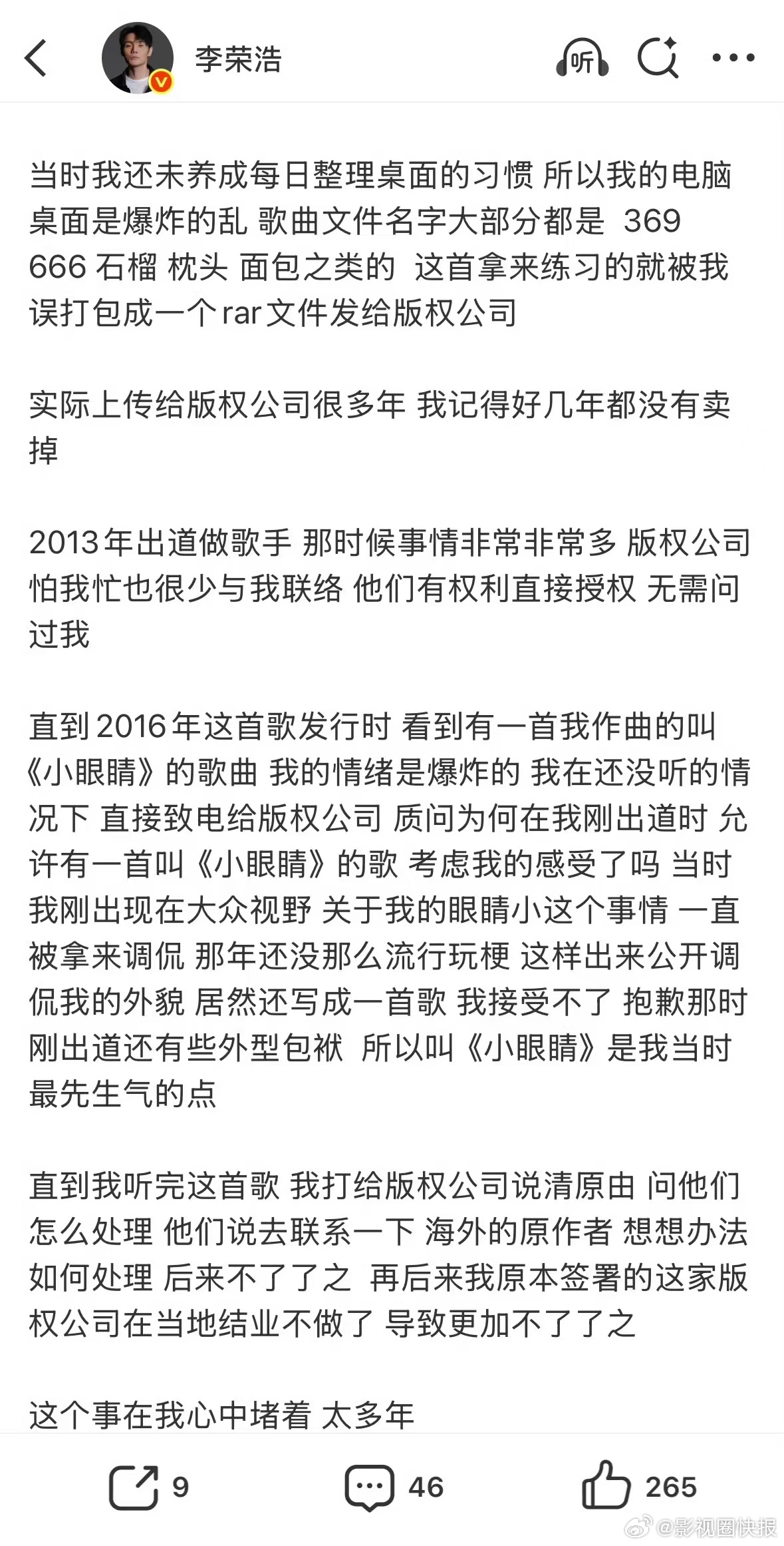 李荣浩眼睛小但不是心眼小正常人都不会刚出道被嘲外貌,还写歌戳自己痛处给别人唱,李荣浩更不会,他眼睛小但不是心眼小、不是缺心眼