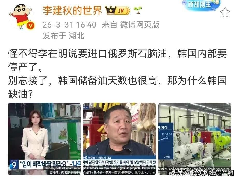 韩国获准向俄罗斯买2.7万吨石油。 注意不是2.7万桶,而是2.7万吨,这个数量还是蛮大的。而且将会以人民币支付这批石油的款项。俄罗斯只是在4月1日禁止出口汽油,不是禁止出口原油,所以韩国买的注定是原油,需要自己运回去提炼。 不过2.7万吨石油,能顶什么事?一船石油都是几万吨到几十万吨,韩国想多买,估计背后的老美不同意。能买2.7万吨,已经是格外开恩的结果了。 有一说一,美国也是石油出口大国,此刻为何没有继续对日韩加大出口量?毕竟美国页岩油产量很大,足以供应大量国家的石油需求,怎么同意日韩买俄罗斯石油? 日本买俄油,出价46美元一桶,结果直接被拒绝,想买俄油也没成功。但是韩国却可以买俄油,说明韩国是以市场价买俄油,而不是限价的46美元一桶。 韩国也是石油制品出口大国,没有工业原料托底,大量工厂也是要停摆的。一旦问题出现,中东地区石油过不来,那就只能自己想办法了。 韩国用人民币买石油,最后的解决办法了。