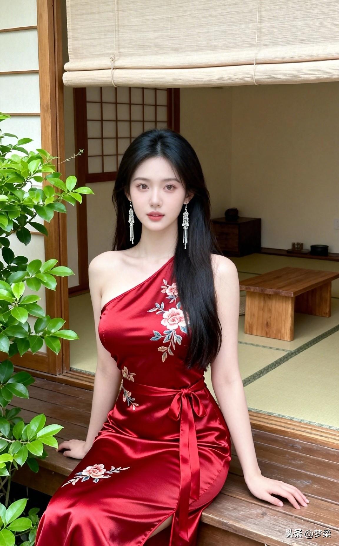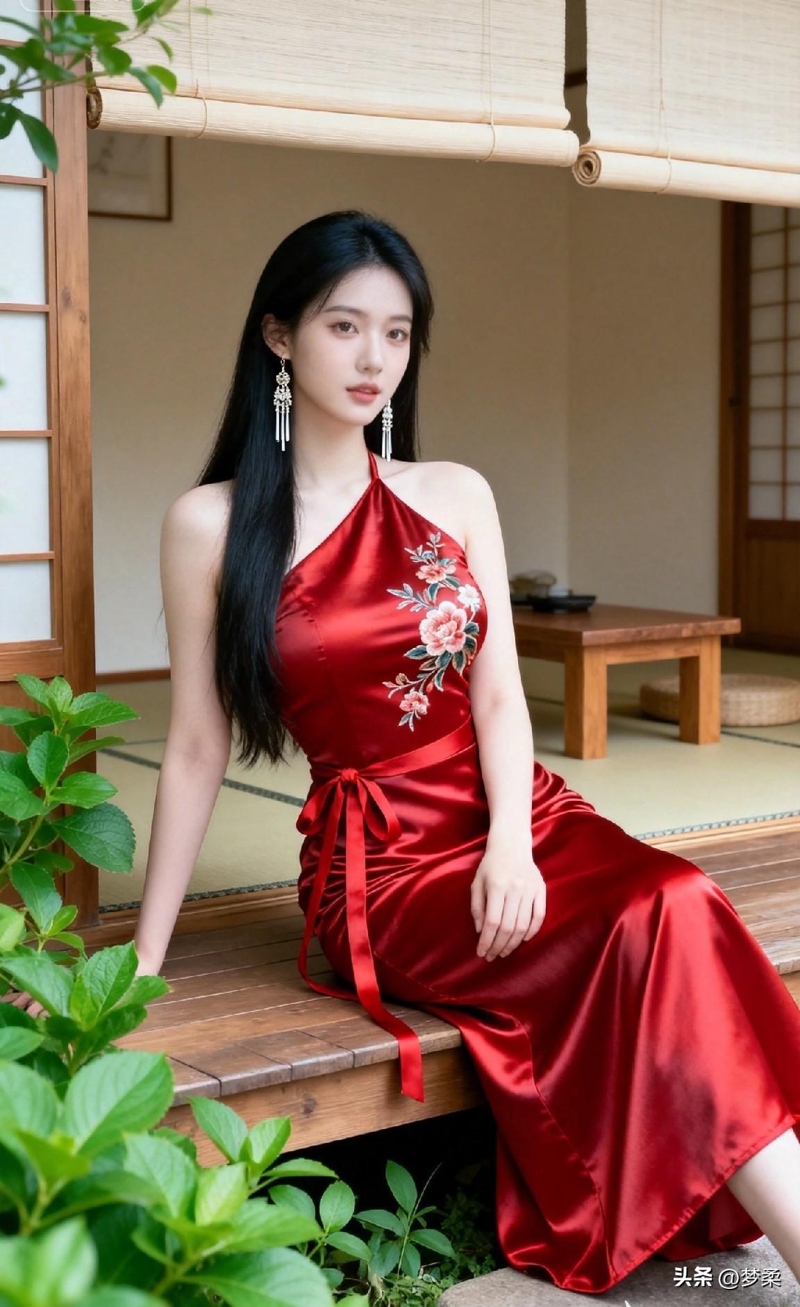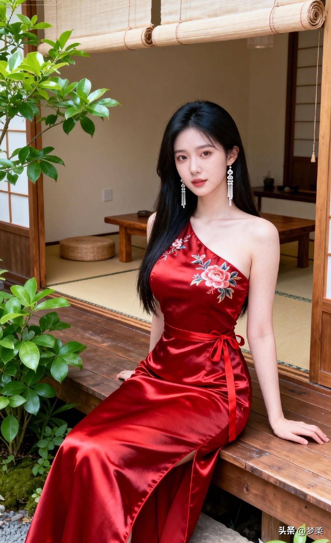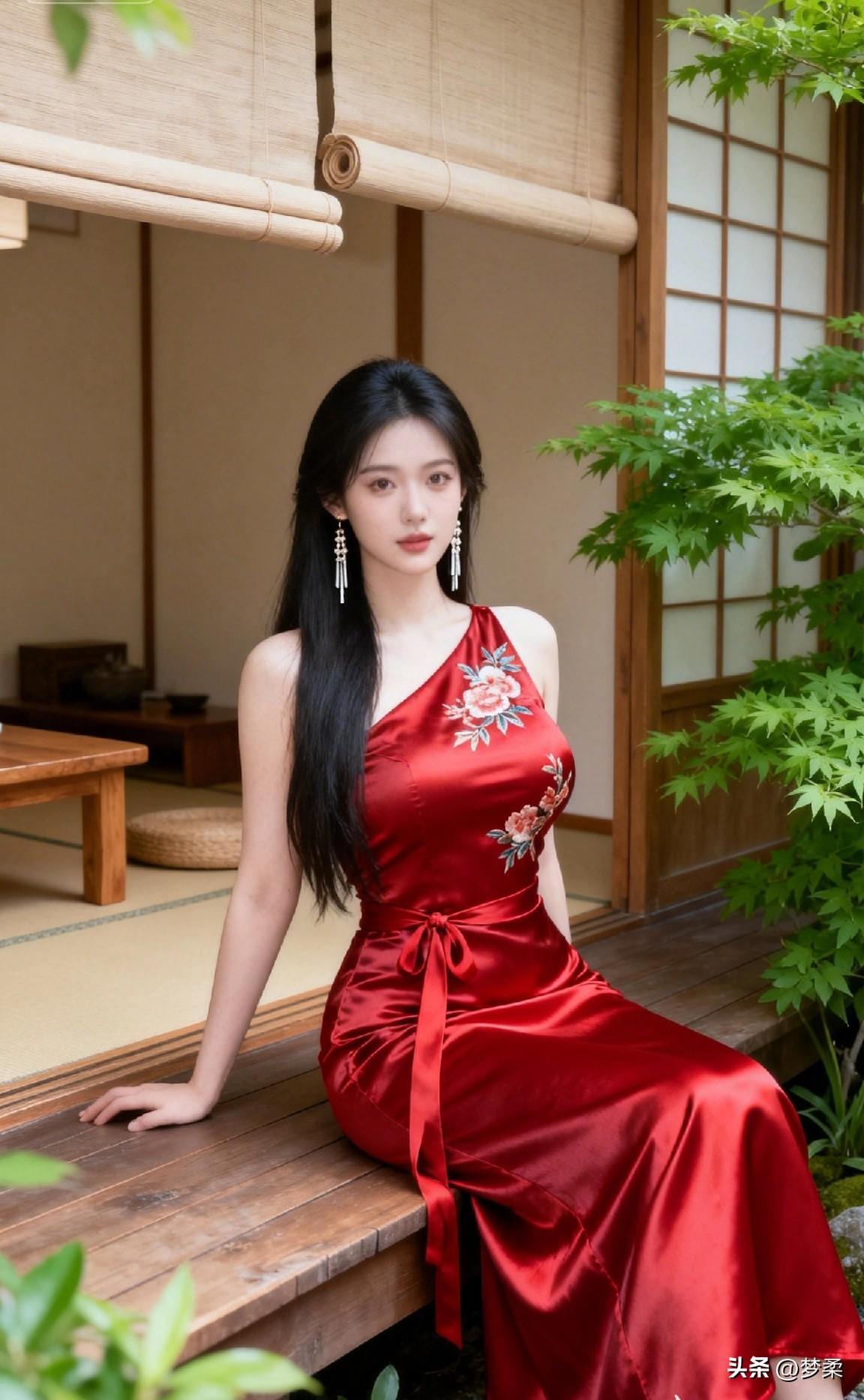 惊艳的红色旗袍,走在繁华的春熙路,感受都市的时尚与魅力!👗👠💃