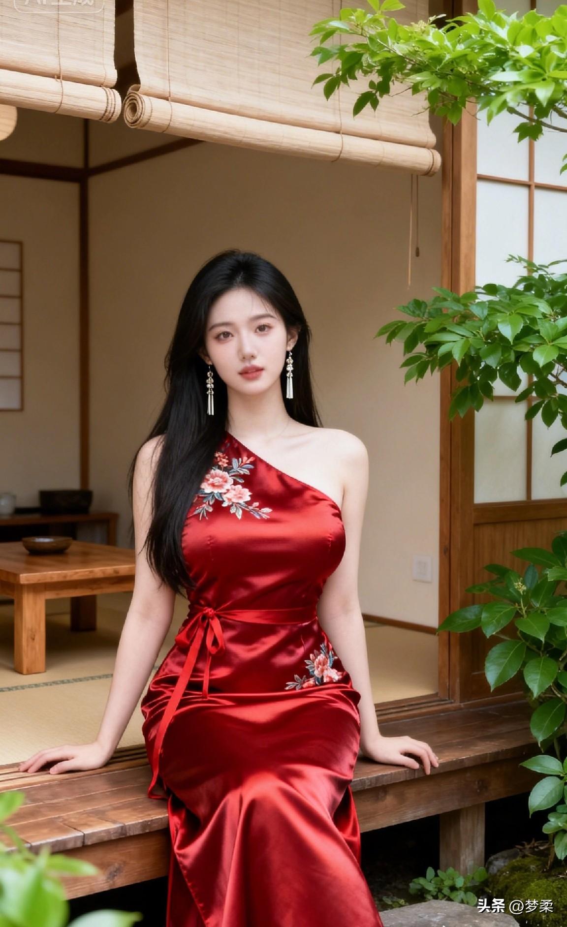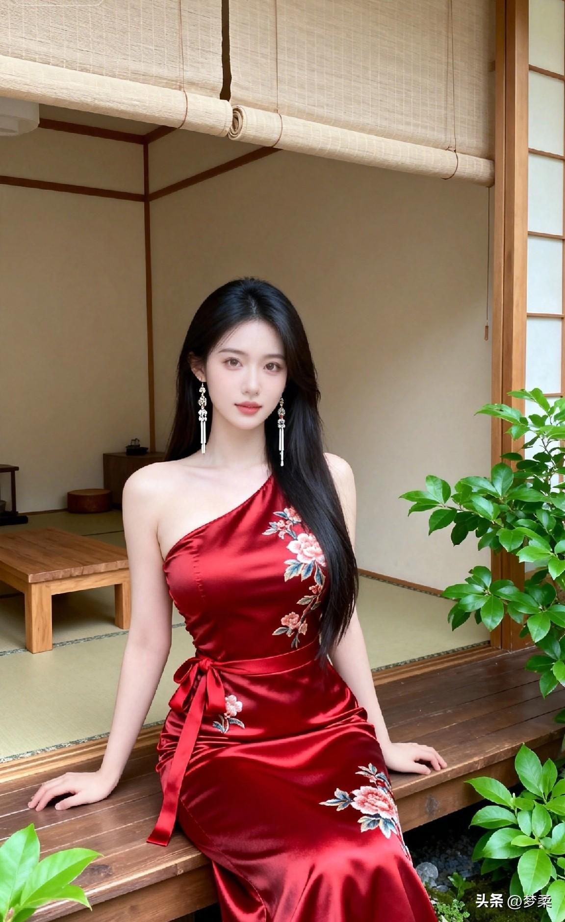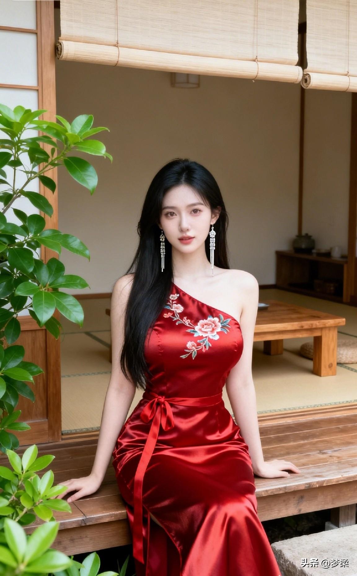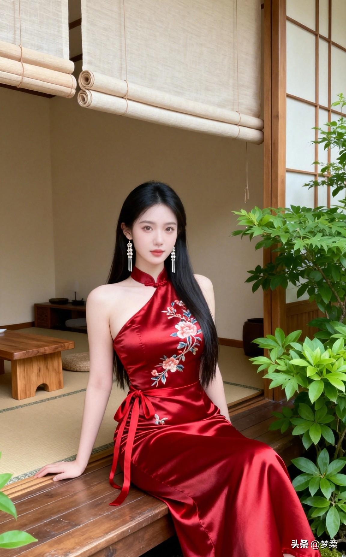优雅东方美人,黑底红花旗袍,惊艳一笑!