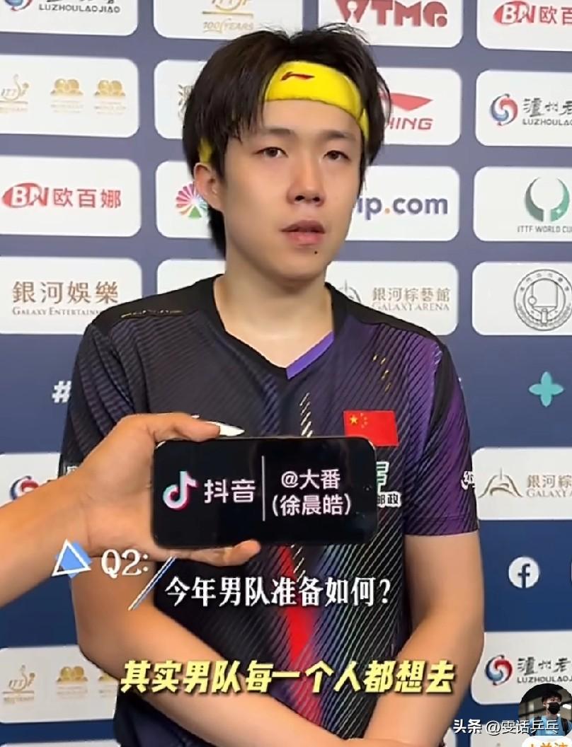 💬本次比赛自己的目标 🎙️并没有什么目标吧。我觉得它就是又一年的这种世界大赛,我希望自己能有一个好的发挥,希望能比上一次的自己发挥的更好吧。 💬男队准备如何 🎙️嗯,其实男队每一个人都想去为男队去做出应有的贡献也好,或者说为男队鼓舞士气也好,我相信大家都是有这样的一个想法来去面对比赛,但当然这是我们的动力,不是我们的包袱。希望我们自己心里清楚,并不要被外界所影响。 💬如何看待2027双打世界杯 🎙️我觉得很好吧,因为现在的世界杯一直可能之前是没有混团,现在加入了混团,然后之前也没有双打,现在又加入了双打,我觉得给给了更多运动员的可能和机会吧,然后创造他们属于他们的这种,嗯,成绩也好,或者说另一条路也好。 2026.4.1