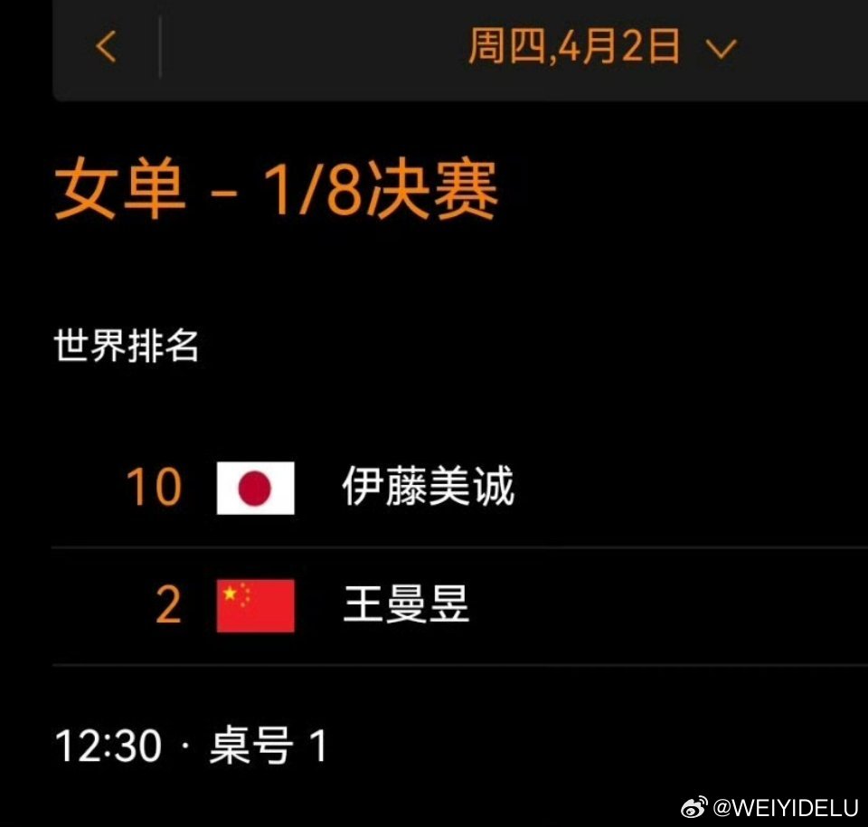 女单1/8决赛今天中午12.30 T1王曼昱vs伊藤美诚 王曼昱加油