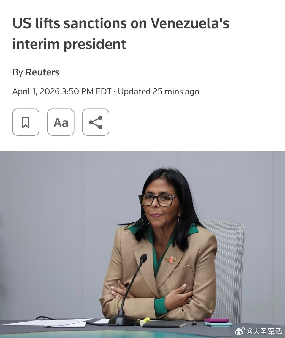 路透社报道指出,美国已将委内瑞拉临时总统Delcy Rodríguez从制裁名单中移除。盘盘们又要抓内奸了。委内瑞拉马杜罗