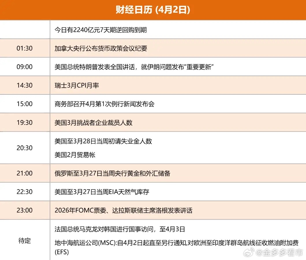 1、外盘汇总:继续普涨,具体如图一。 2、交易提示:无。 3、财经日历:如图二。 4、三大指数:1)大盘:继续看涨2)创指:新目标34703)科创50:短压1370 5、重要新闻:1)国家发改委、商务部、财政部近期将开展今年第二批中央冻猪肉储备收储;2)市场监管总局就《保健食品原料 益生菌》国家标准向社会公开征求意见。 6、市场动态:1)甘肃:“十五五”风光新增80GW 开展“新能源+”十大行动;2)我国将开展基层医疗质量改善三年行动;3)多省份城市足球联赛即将启幕:浙江率先开打,江苏湖北紧随。 7、公司公告:1)甘肃能化:拟购买金昌化工100%股权,股票停牌;2)三江购物:股东阿里泽泰拟减持不超2%公司股份;3)上汽集团:2025年度净利润101.06亿元,同比增长506.45%;4)天赐材料:全资子公司九江天赐起诉12方索赔14.72亿元;5)华谊兄弟:5640万元债务逾期及账户被冻结;6)信达地产:2025年净亏损78.75亿元。(关注点赞+评论,陪你一起到牛市)财经今日A股