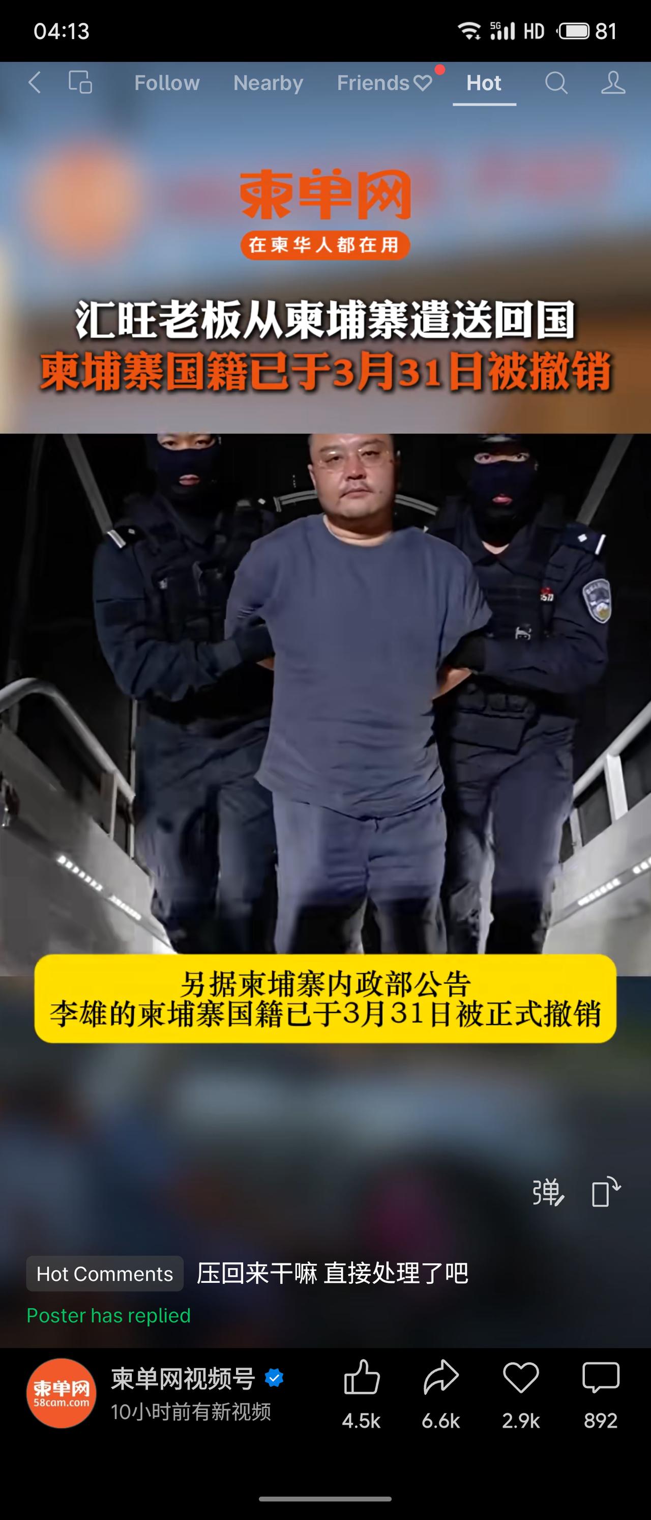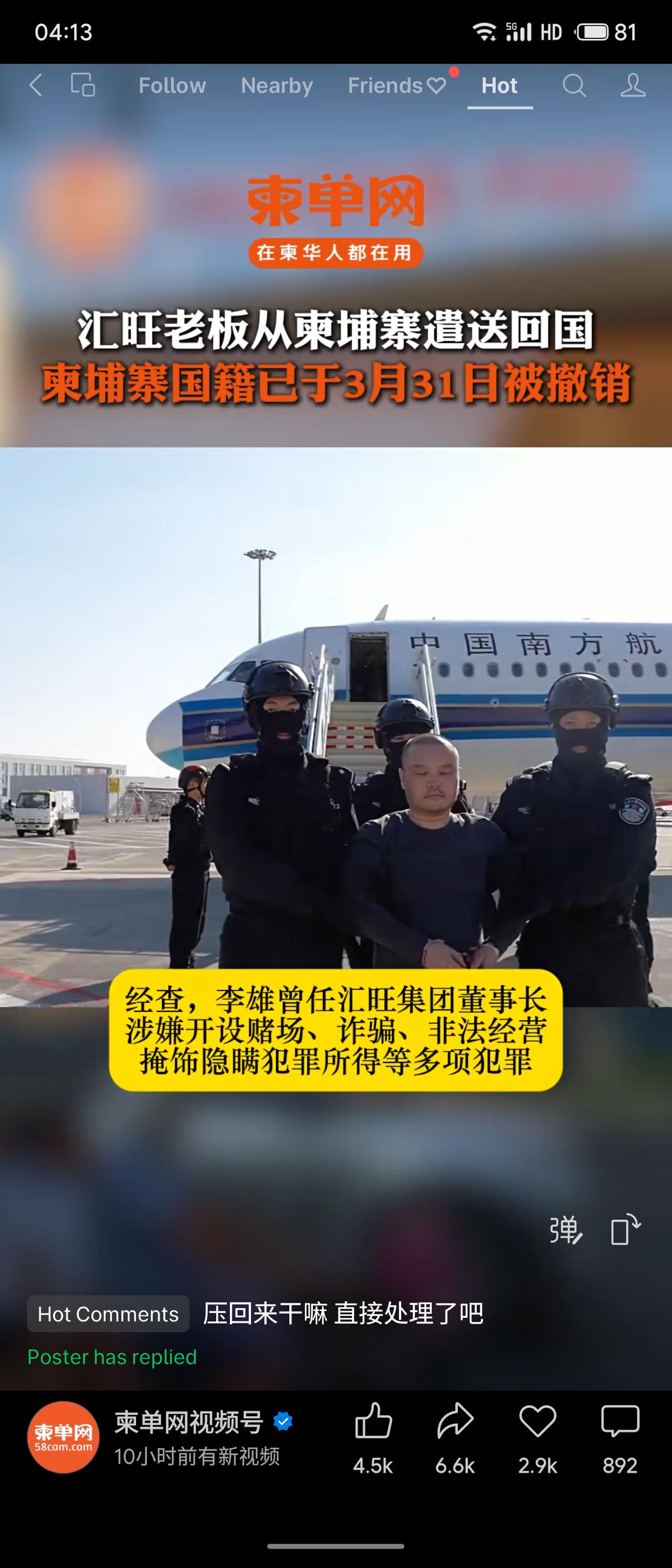 汇旺集团创始人李雄(外号“西总”)因涉嫌开设赌场、诈骗、非法经营等多项犯罪,于4月1日从柬埔寨被押解回国。其柬埔寨国籍已于3月31日被正式撤销。 此举彰显了我国打击跨境犯罪的坚定决心,也是国际执法合作的积极成果,对潜逃境外的犯罪分子形成了有力震慑。