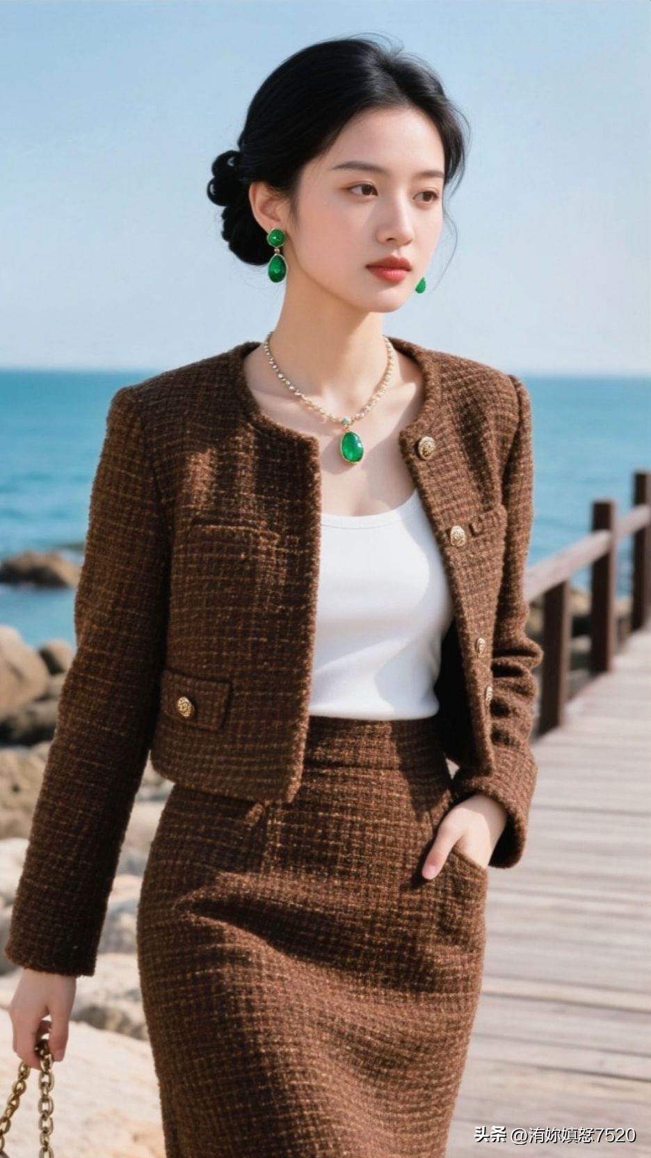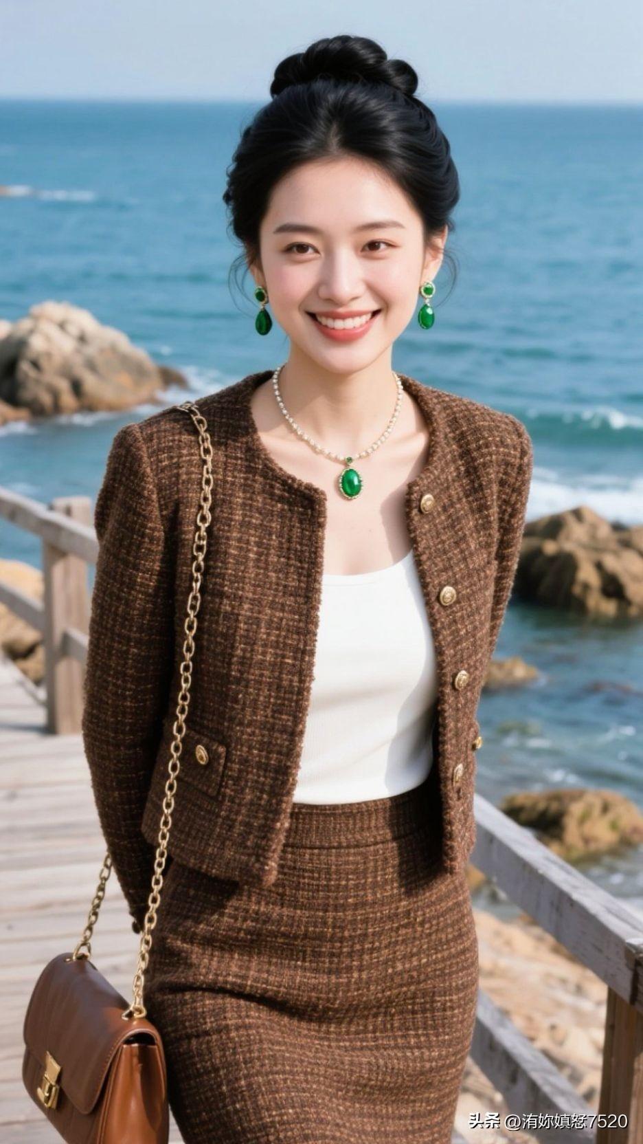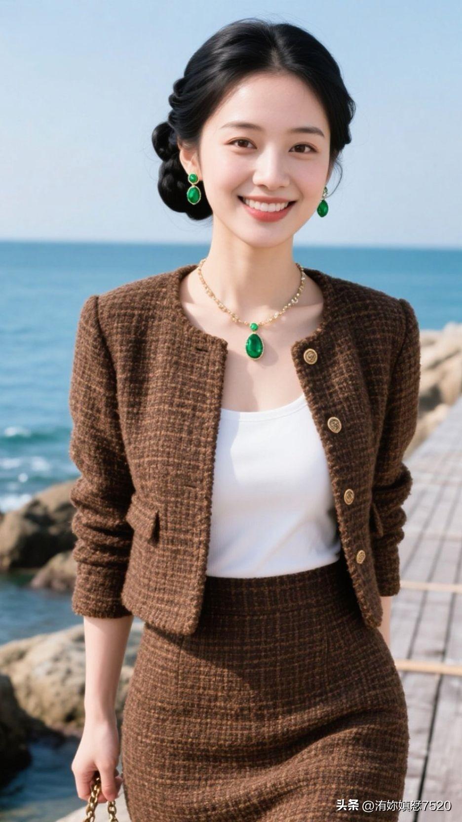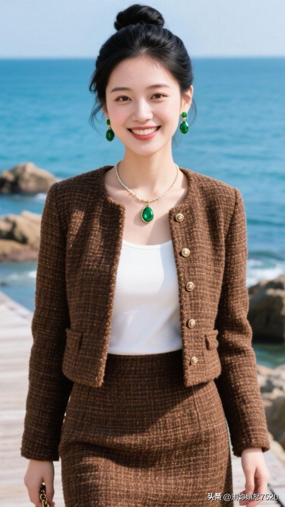 🏝️ 浪花漫过石滩时,棕呢盛着日光的柔,翡翠是坠下来的海魂,一笑间,整个空间都浸着治愈的甜。少女风写真照 中国风配色有多惊艳?