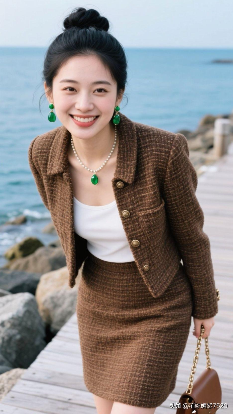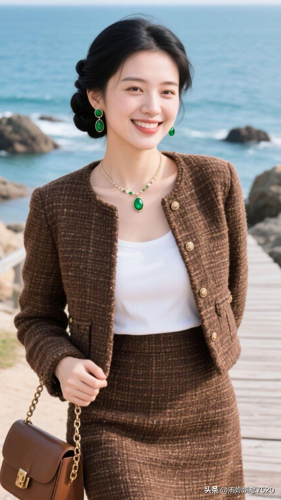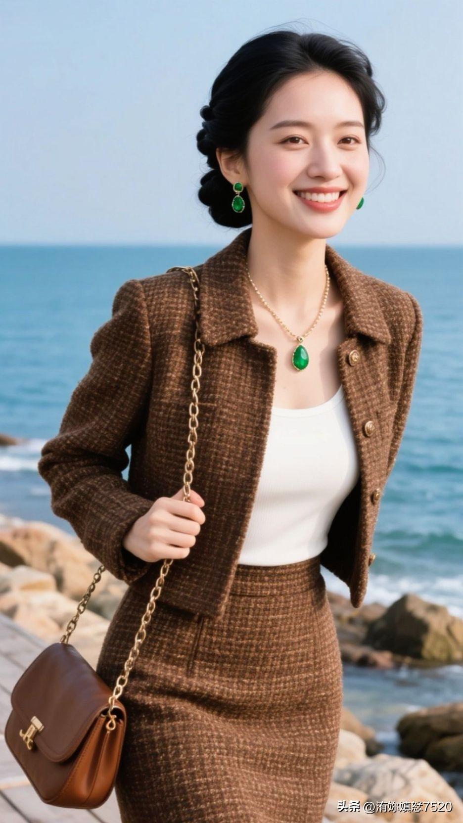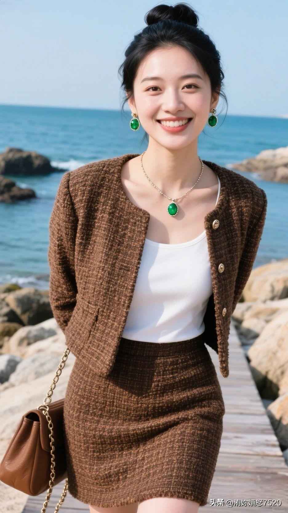 🏝️ 浪花漫过石滩时,棕呢盛着日光的柔,翡翠是坠下来的海魂,一笑间,整个空间都浸着治愈的甜。少女风写真照 中国风配色有多惊艳?