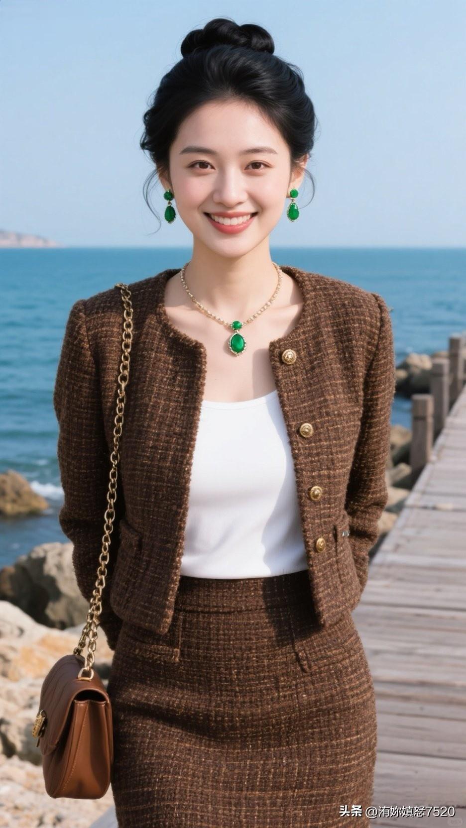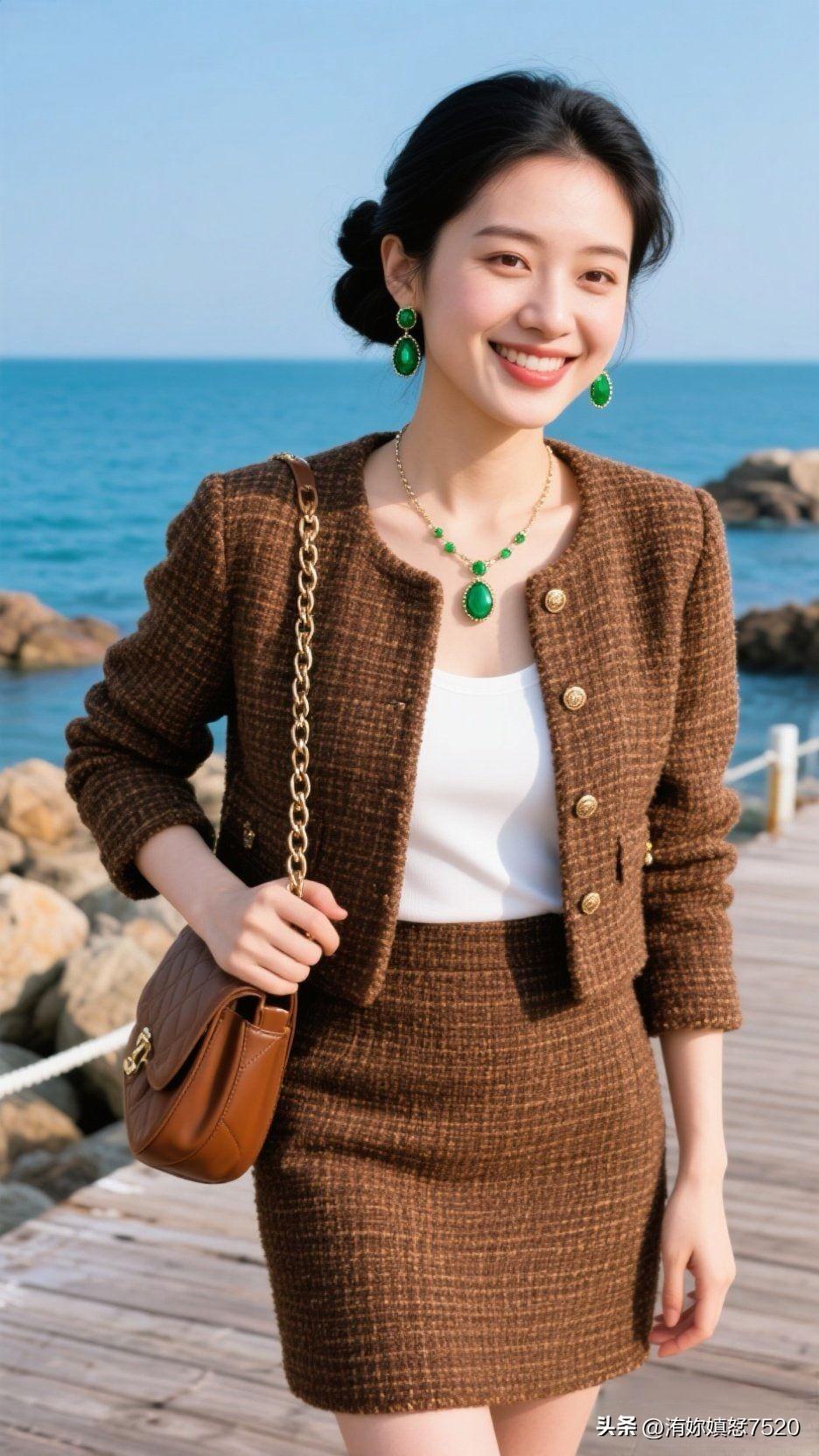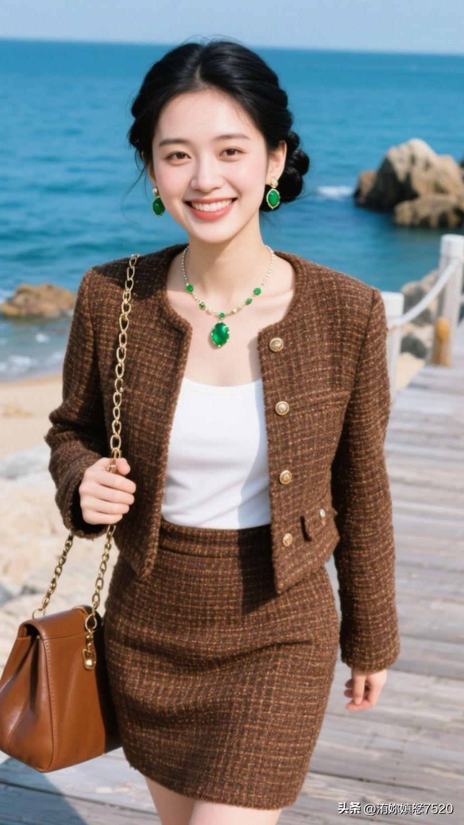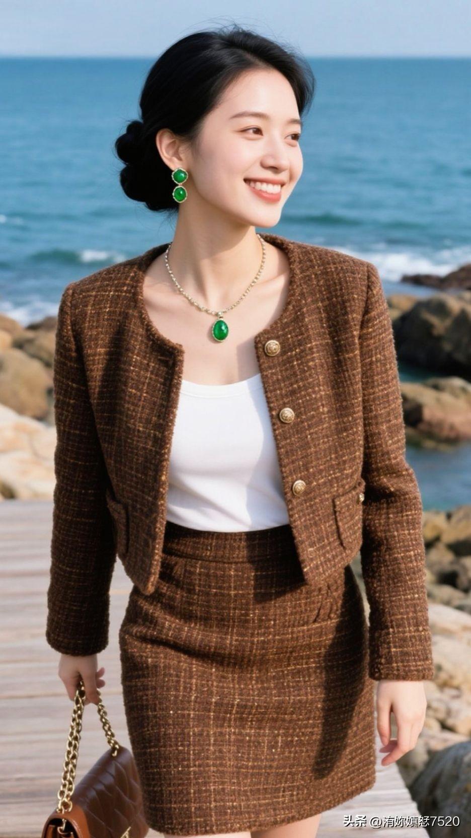 🏝️ 浪花漫过石滩时,棕呢盛着日光的柔,翡翠是坠下来的海魂,一笑间,整个空间都浸着治愈的甜。少女风写真照 中国风配色有多惊艳?