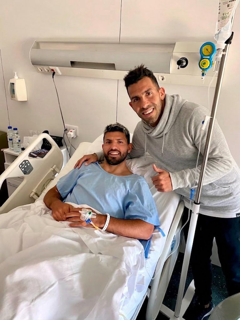 特维斯看望了在独立队传奇比赛中跟腱撕裂并接受手术的阿圭罗。