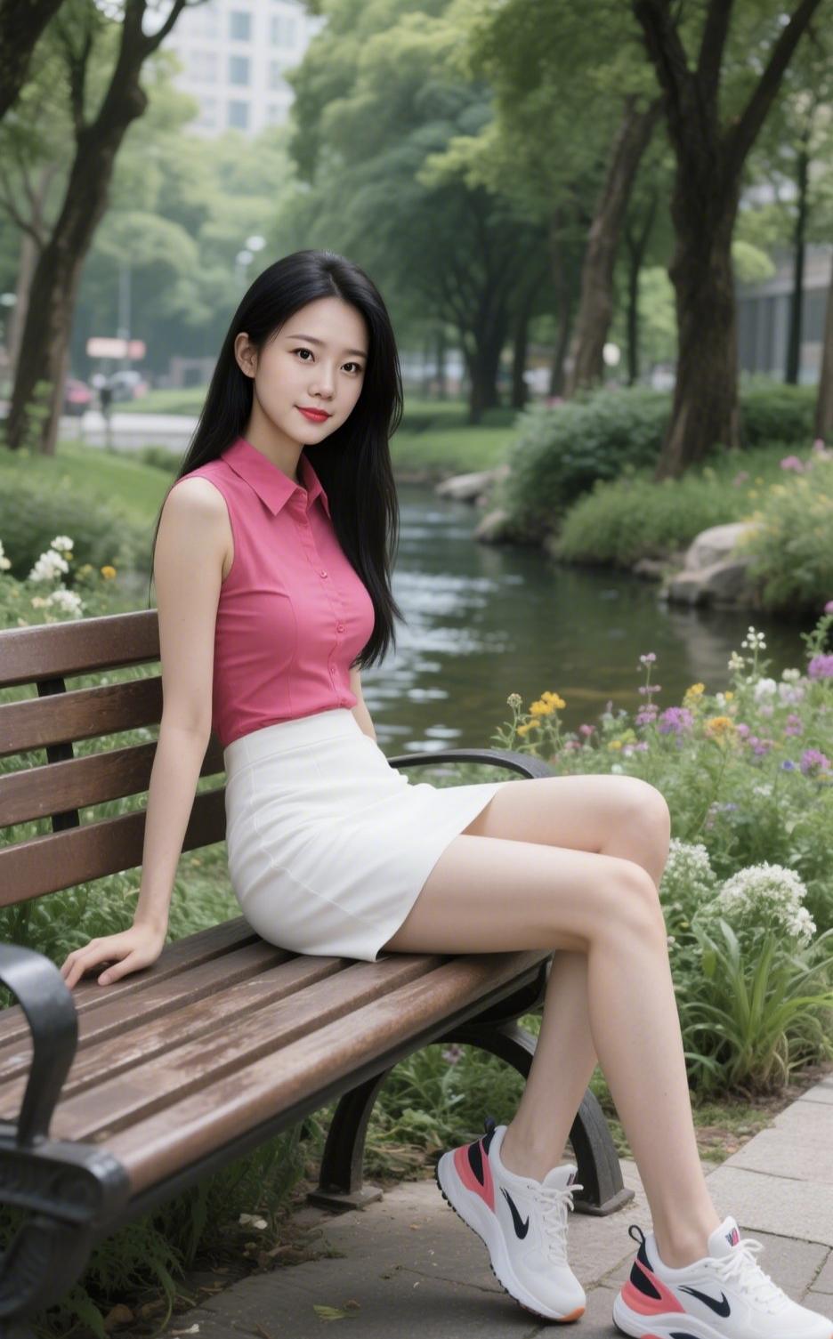 《公园小坐》 浓荫织就清凉境,曲水潺湲绕岸流。 万紫千红开烂漫,一川翠色漫汀洲。 粉衫映日添明艳,白裙裁风显雅柔。 黑瀑垂肩凝秀色,红唇含笑意悠悠。 长椅闲栖身自逸,芳丛漫倚意无愁。 跑鞋轻踏尘嚣远,秀目遥观岁月稠。 树影婆娑筛碎金,波光潋滟漾温柔。 偷得浮生半日暇,且将心事付汀鸥。 公园治愈系美景 春日闲韵 湖畔闲景赋 湖畔春日韵 湖畔春闲 初春公园随笔 湖畔半日闲
