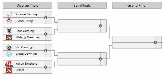 10:00 VG vs Cloud Dawing13:00 Roar vs Mideng Dreamer(lou+7e的新队)16:00 XG vs Cloud Rising19:00 YB vs NGNB