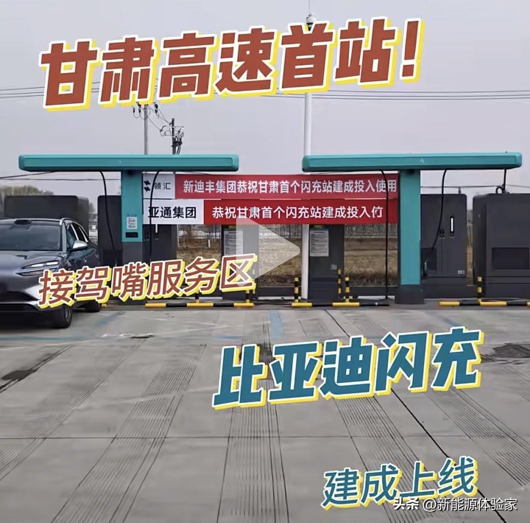 比亚迪闪充落地甘肃,接驾嘴服务区这场投运仪式,领导规格直接拉满! 甘肃公交建董事长坐镇,高速集团董事长亲自对接,再加上比亚迪高管到场。 这哪里是建个充电站,分明是西北补能基建的“头等大事”! 这么大阵仗的首站,有没有人想去打卡体验一下5分钟回血的?
