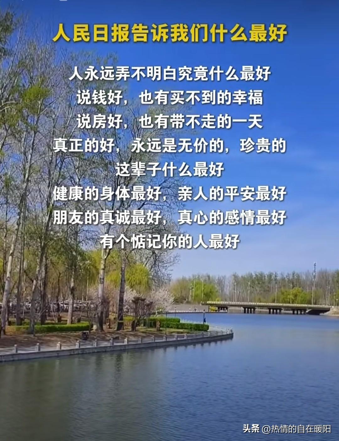 此生最好 健康身板最硬气, 心态平稳不生气。 儿孙绕膝多欢喜, 家人平安是福气。 知己两三懂心意, 有人惦记最温馨。 爱自己来多惬意, 逍遥快乐活四季。 身康健,世界归你; 心豁达,快乐随你。 此生所盼,不过是 健康喜乐,家人安宁 爱自己,是终身浪漫的开始。