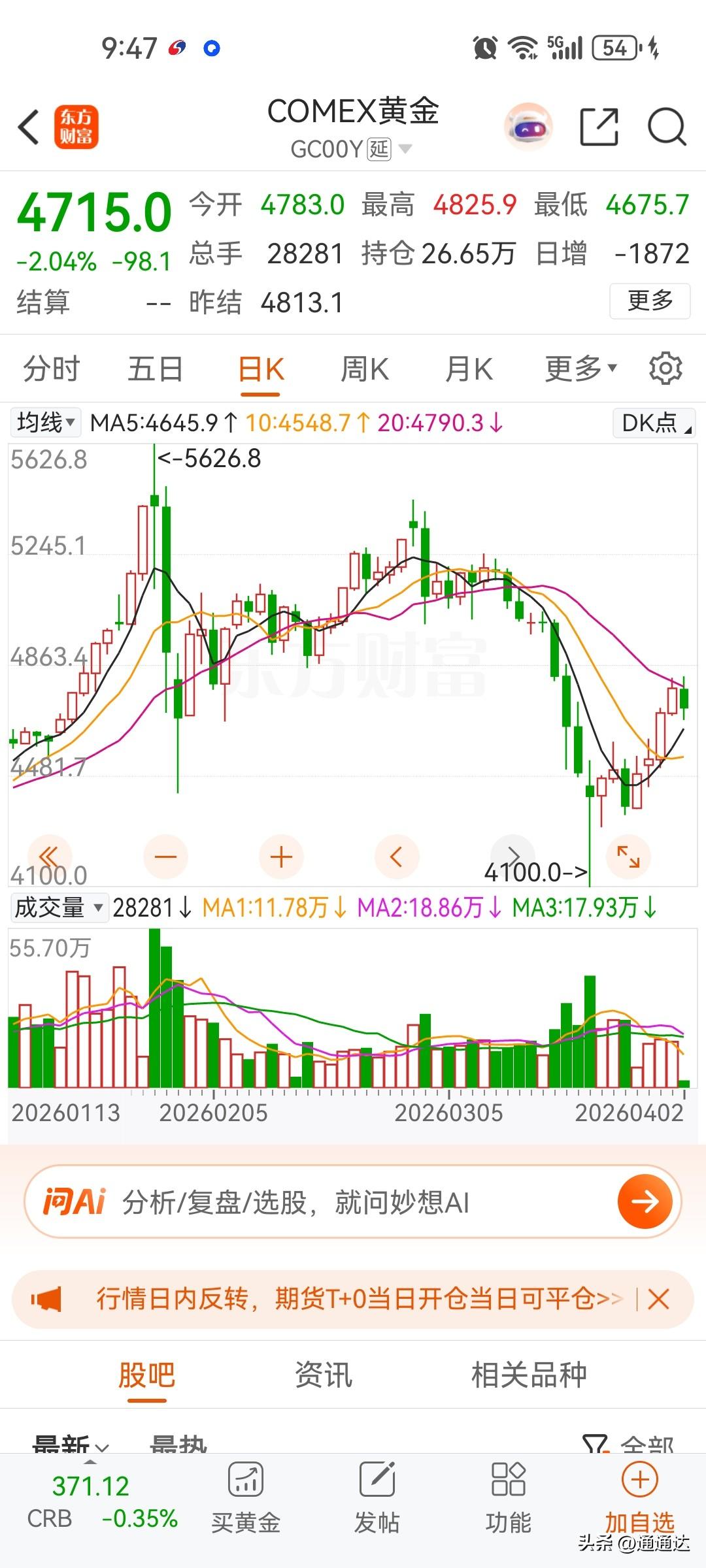 油价短期暴涨有可能到150到两百,但战争必将结束就算五年十年都有结束的时间,结束后会回到开采成本60美元每桶,但黄金短期回调,是跌不下去的,美元贬值的通道没有结束