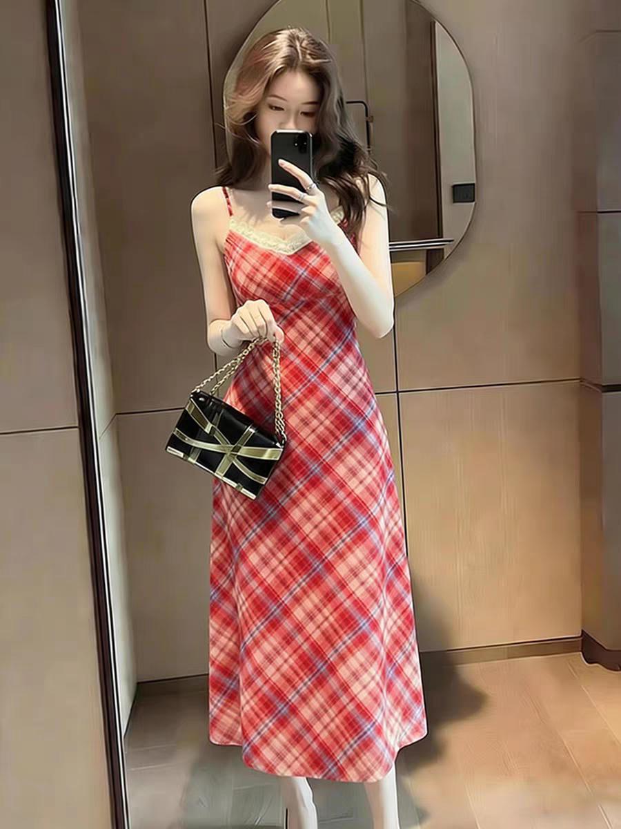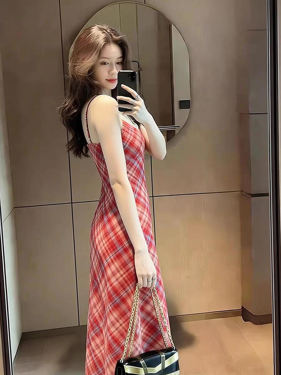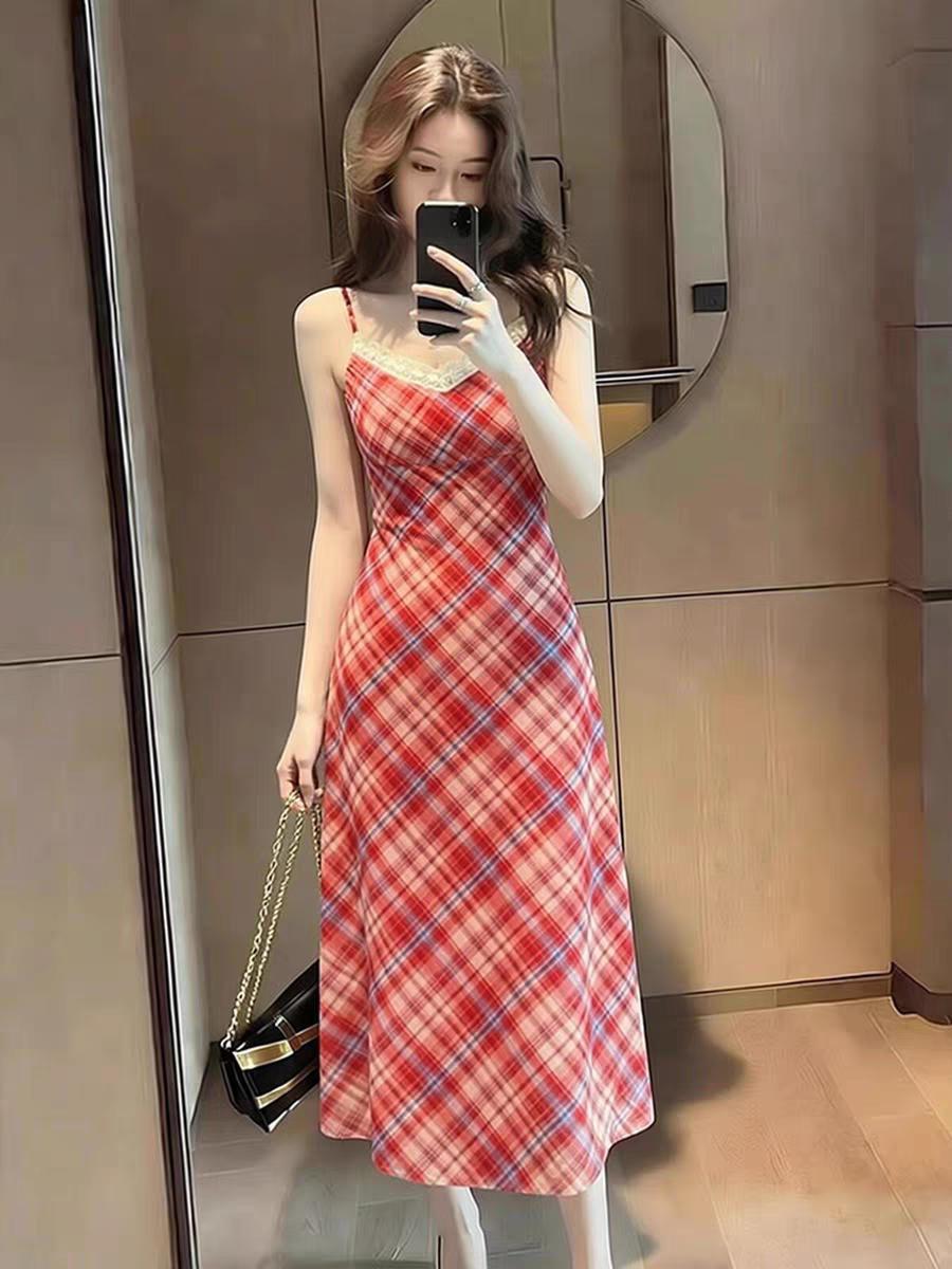 爱不释手的红色条格吊带连衣裙。像小仙女一样!温柔红色穿搭
