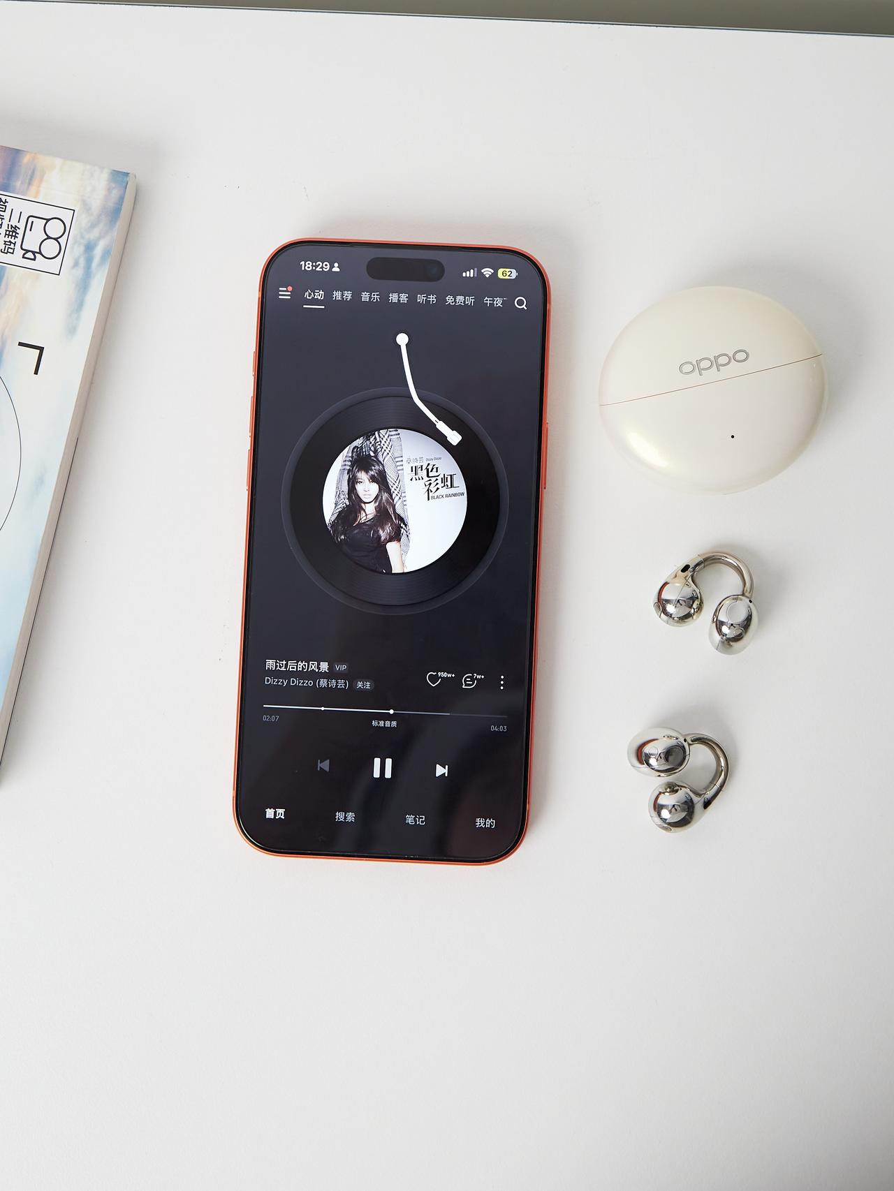 给iPhone弄的新搭子,OPPO新耳夹耳机好爱~ 这回是提前拿到了🎧莎莎同款小金环——OPPO Enco Clip2🎧 感觉新一代的设计确实好看一些哦,耳环设计布林布林的,而且戴着存在感超级低,前天还忘了耳机没摘,差点戴着洗澡去了😂 入手前还担心oppo耳机跟iPhone连不适配,实际用了几天,连接很稳,也能双设备连接,甚至连接时的弹窗都能自定义,而且还能语音操控,运动的时候还蛮方便的,切歌、调音量用语音就行。 平时喜欢运动的,建议都试试oppo这种耳夹耳机,戴着是真的很舒服~ 耳夹耳机莎莎同款OPPO手表耳夹 OPPOWatchX3Mini莎莎同款OPPO手表耳夹 OPPOEncoClip2 OPPO耳机 iPhone