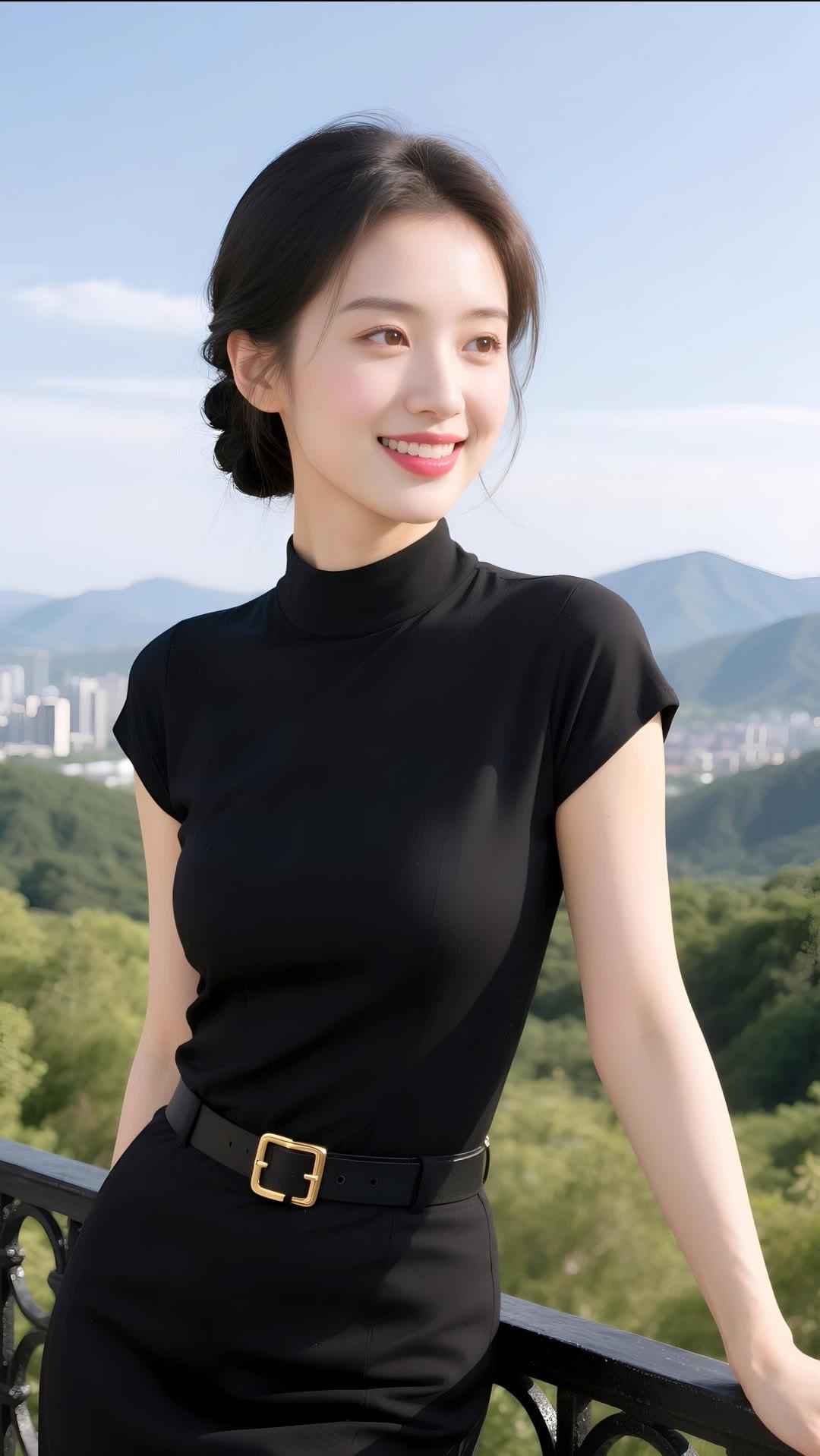 都市女郎的优雅穿搭,黑色连衣裙搭配腰带,尽显时尚魅力!