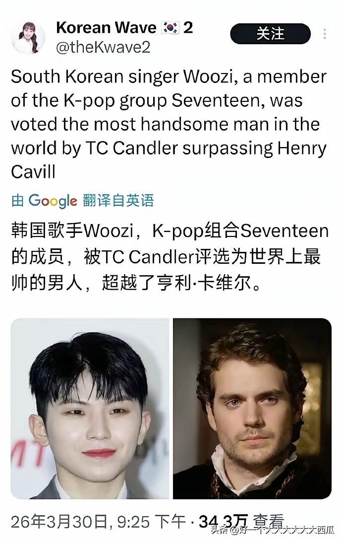 这个世界最帅男人到底是什么标准, 你说亨利卡维尔不是最帅的我们可以忍, 但是这个韩国人Woozi是什么情况, 他居然能够被评为世界最帅? 不说别的,至少张凌赫就比他帅, 而且还不是帅一点点, 绝对是吊打式的超过。