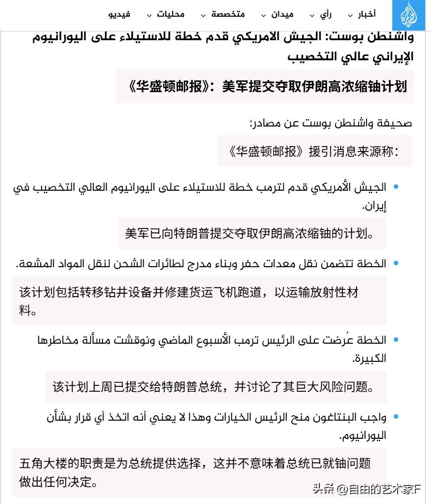 太尴尬了!特朗普对伊作战计划曝光:机降,挖土,修建野战跑道 美国当地时间4月2日,华盛顿邮报披露了:美军已向特朗普提交夺取伊朗高浓缩铀的计划,看完之后让人大跌眼镜,这份计划不愧是五角大楼精心策划的,看完之后让人尴尬的,不知道怎么评价才好。 伊朗现在共有453.6公斤高浓缩铀,全部存在伊斯法罕核设施内部,由于该设施在去年美国对伊朗发动的12天的攻击中遭受到破坏,浓缩铀被深藏于地下。现在的核存储区通道被当时炸坏的瓦砾封堵。所以要夺铀就必须先修路开道 1、美军需要顶住被伊朗无人机和导弹的轰炸情况下,向该地区空运大型的挖掘设备和近千名美军。在这里待上长达数月的时间,修建一条临时跑道 2、然后,全员顶着核辐射的风险,用挖掘机挖开防护,在钻到竖井口里边,将浓缩铀取出撤退。