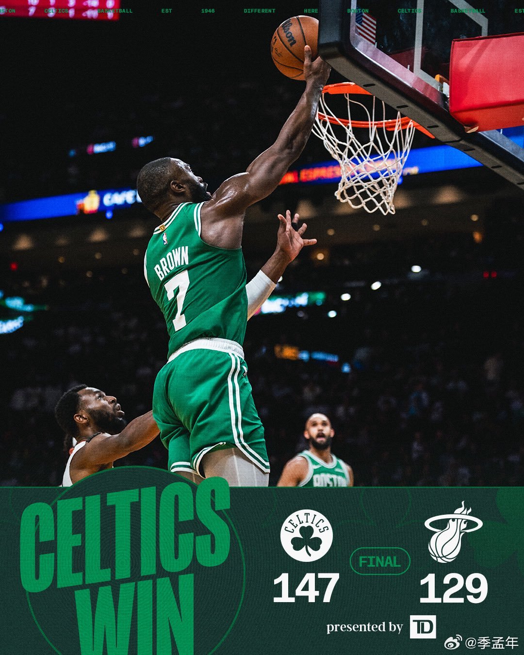 一场诚信互刷。双探花合计68分,阿德巴约也有漂亮的数据。虽然从23年东决G3之后,热火就再也没在主场赢过凯尔特人,但大家都有光明的未来。凯尔特人nba