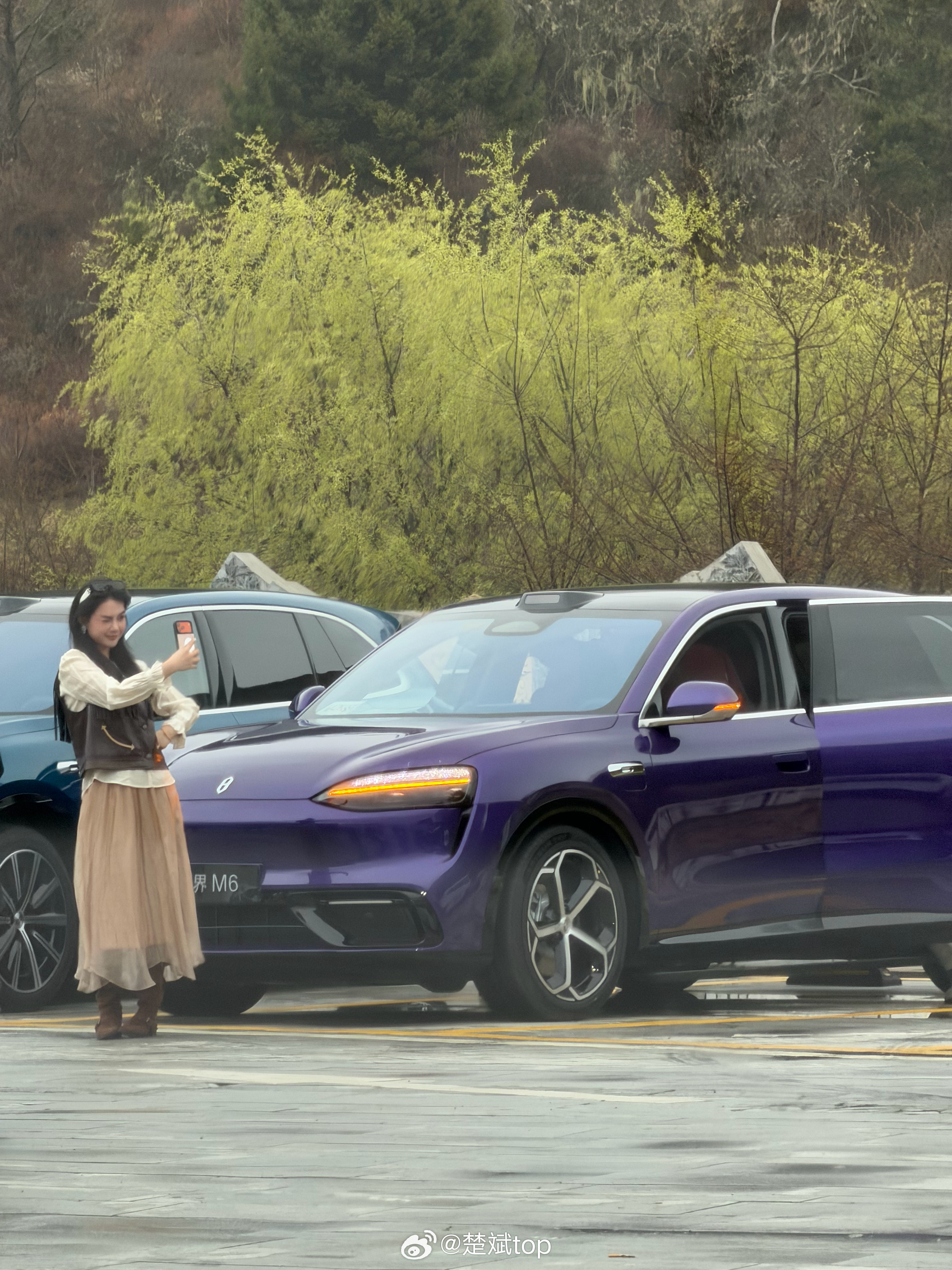 问界M6 这款车很有性格,从车身颜色上看就知道消费主力应该是年轻人,蓝,橙,紫这些吸睛的车漆在阳光下很有质感,还有那晶钻的头灯和尾灯,哪个小姐姐能扛得住?虽然我已步入中登年纪,连我都非常喜欢,车试驾完了,先看看美图吧记得给我点赞 问界M6